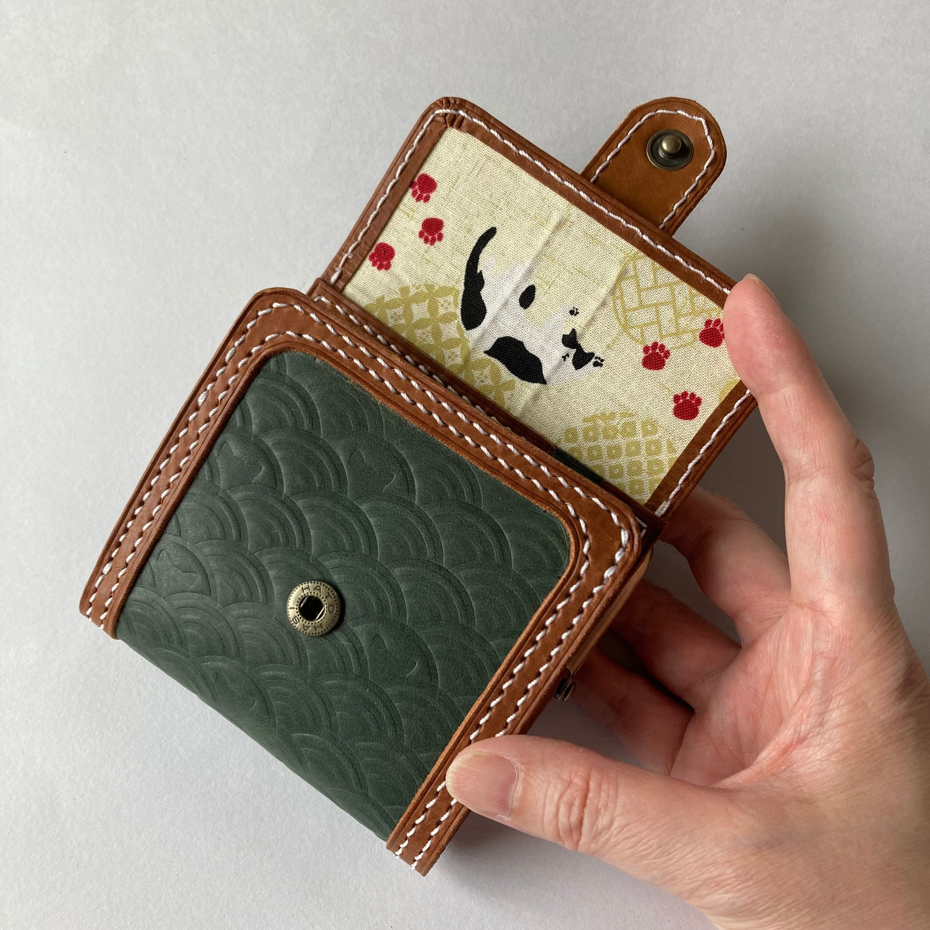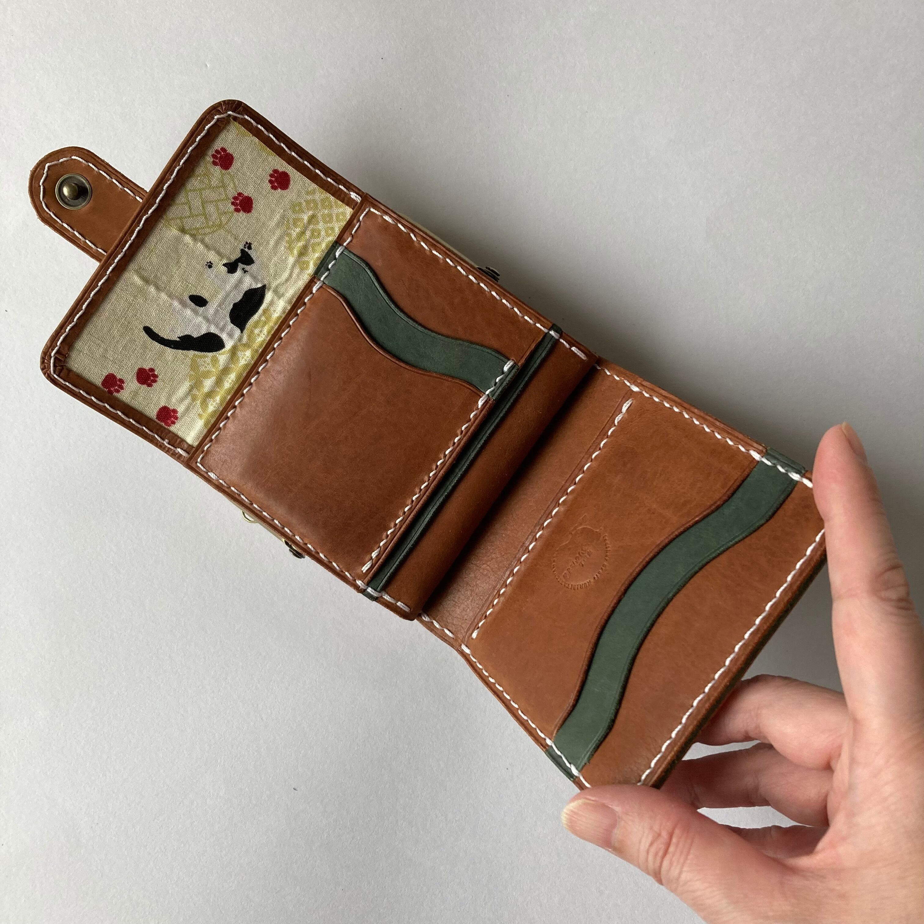 全て手作業で仕上げた、猫好きさんのための国産牛革製二つ折り財布です。