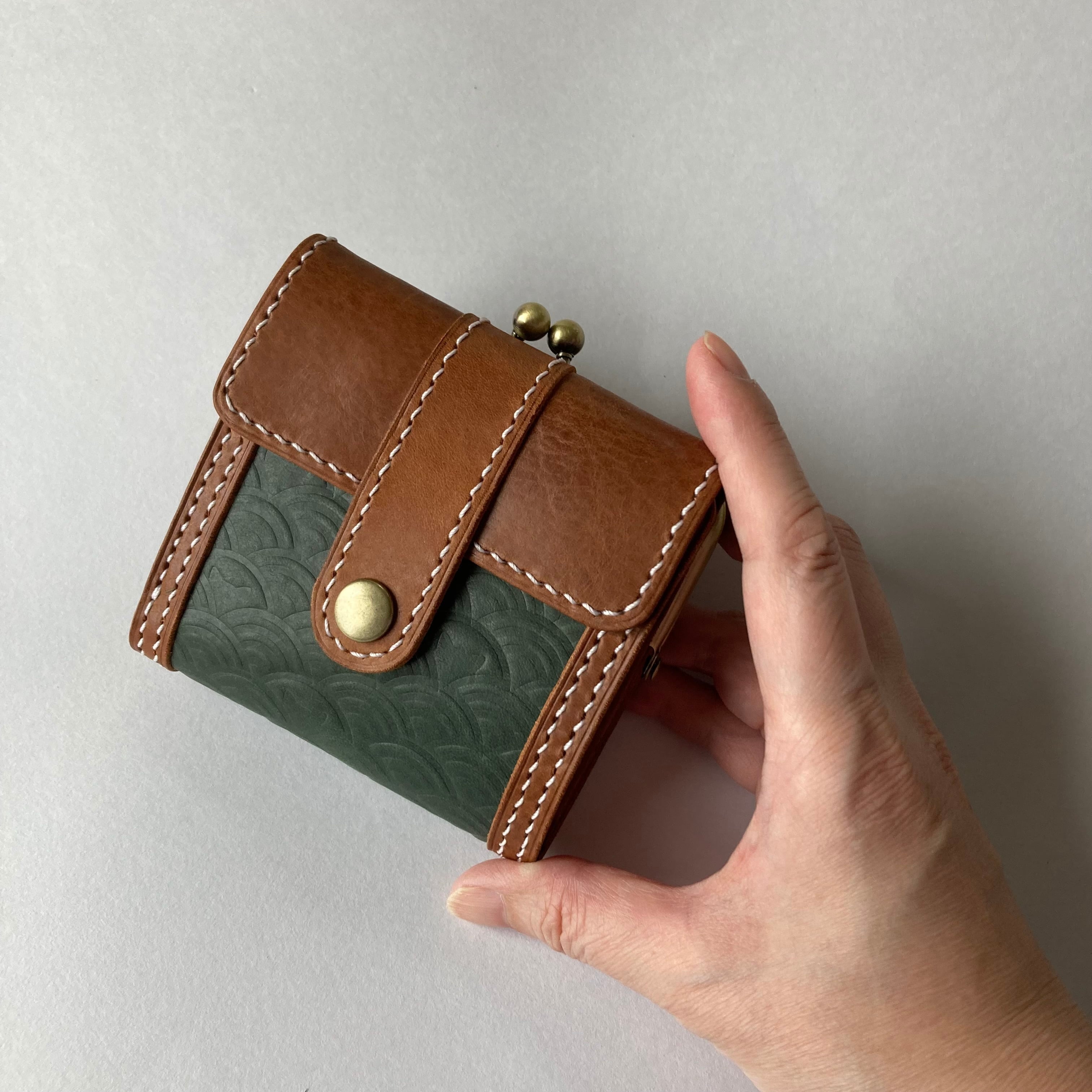 がま口付き二つ折り財布(グリーン)