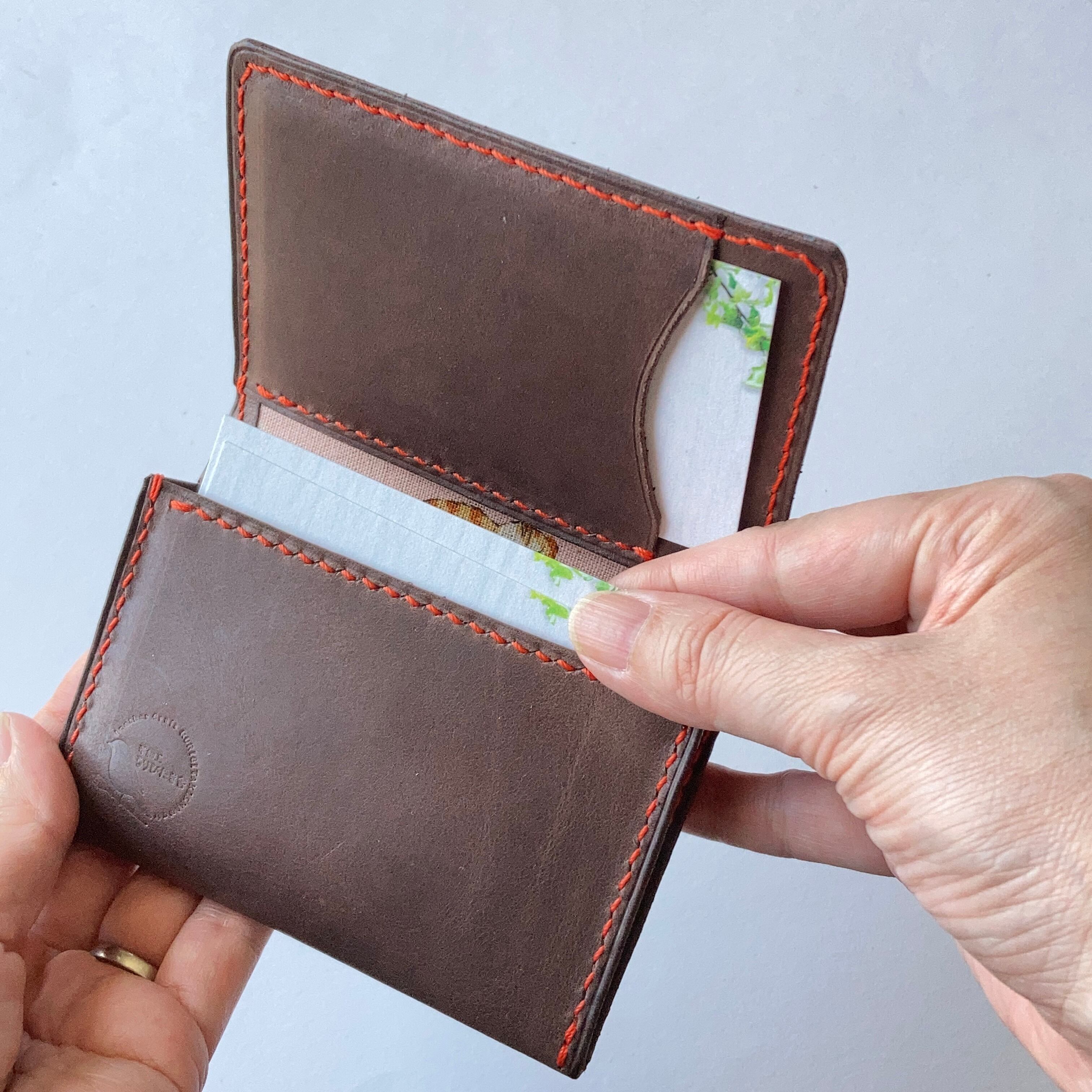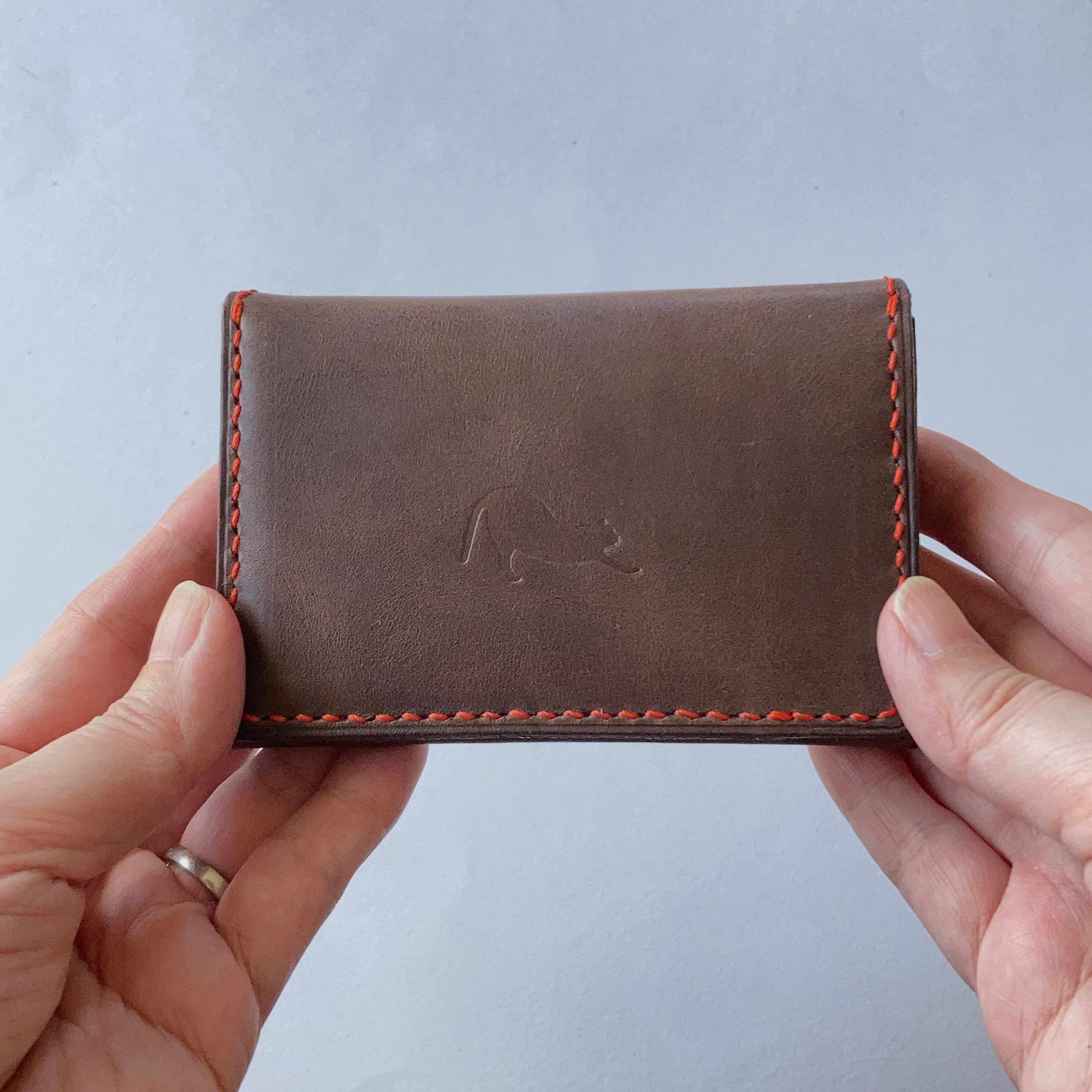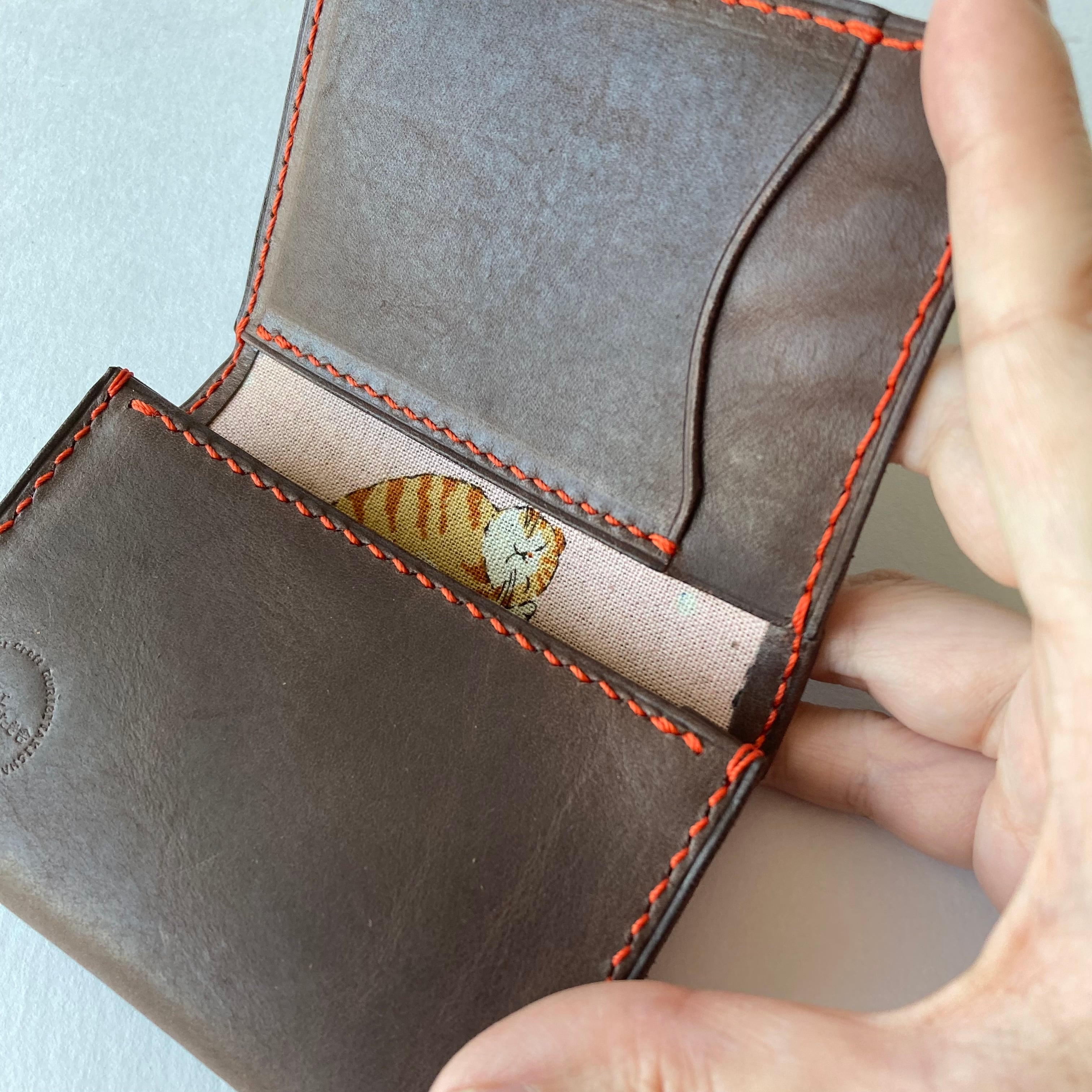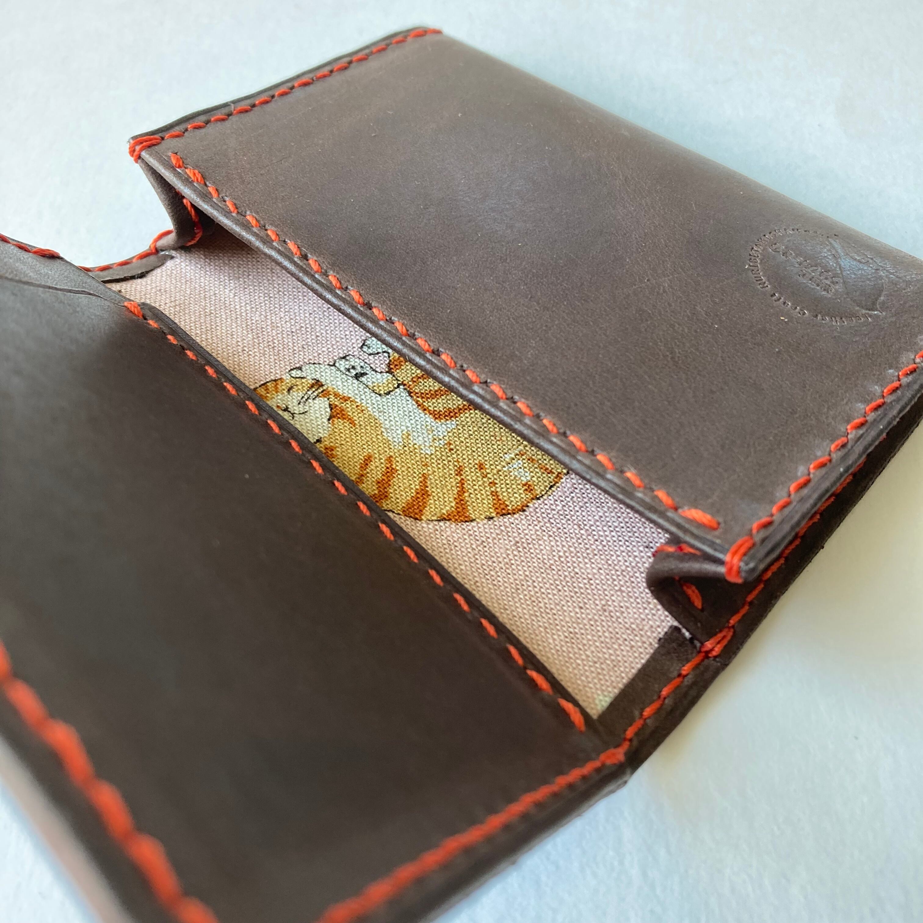 全て手縫いの、猫好きさんのための本革名刺入れです。