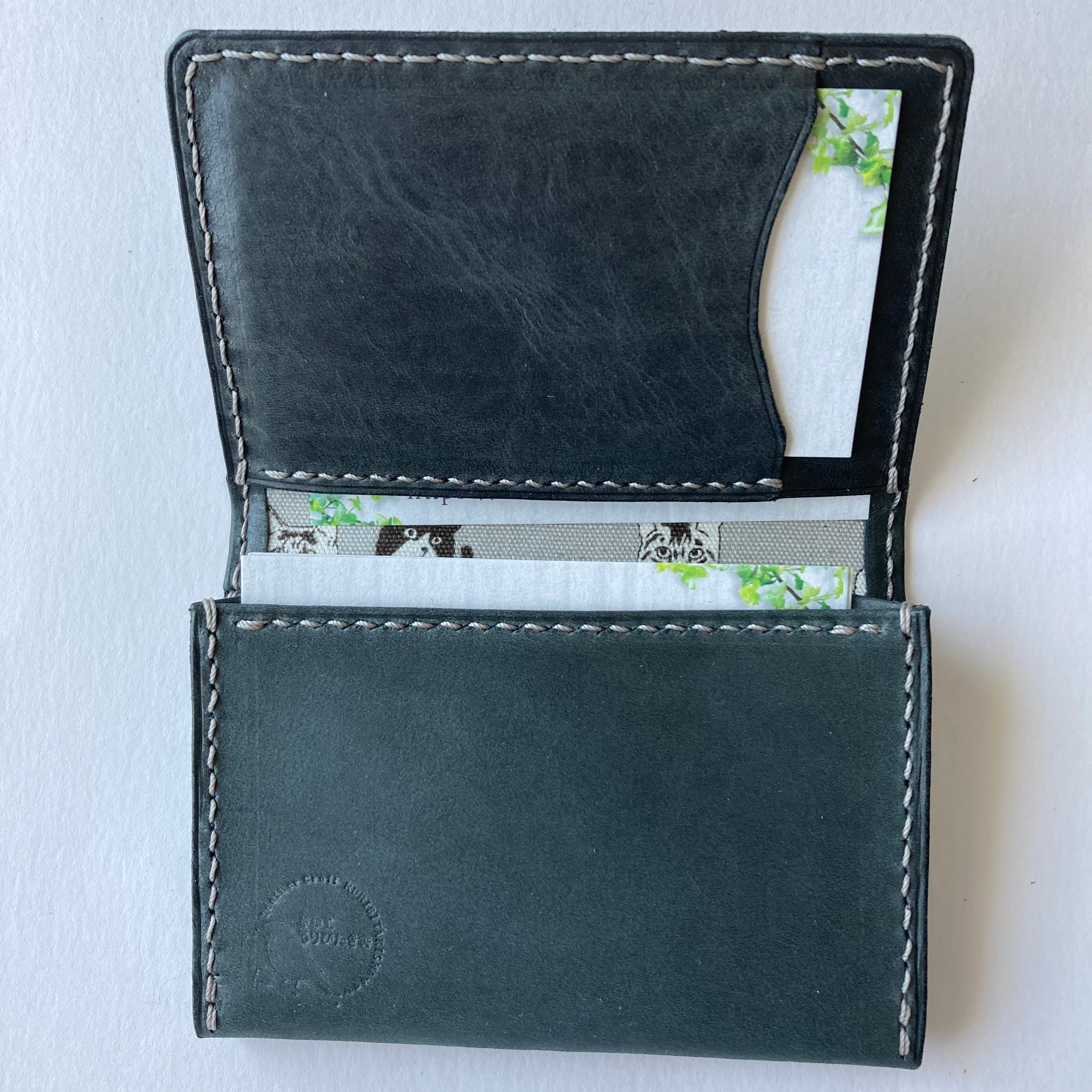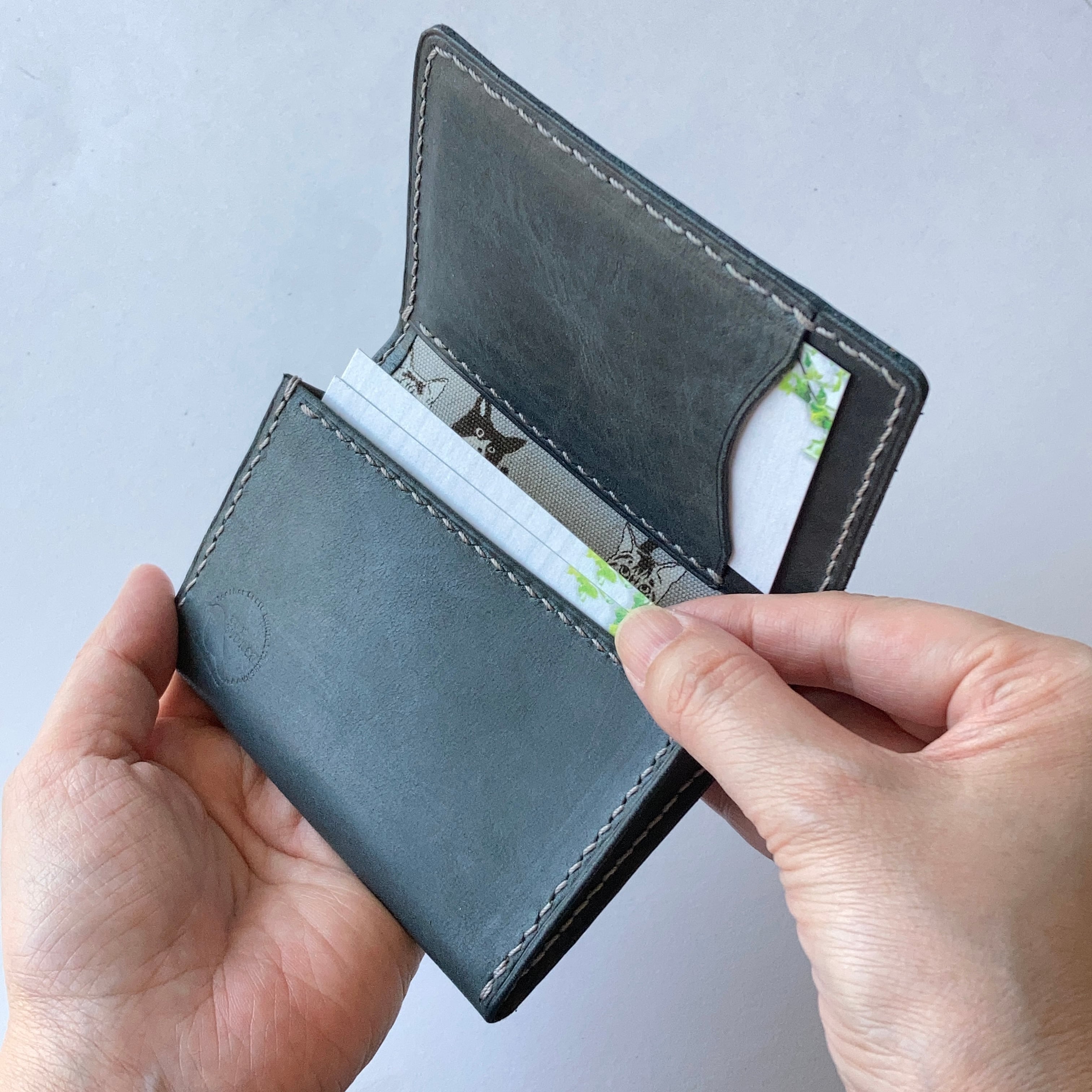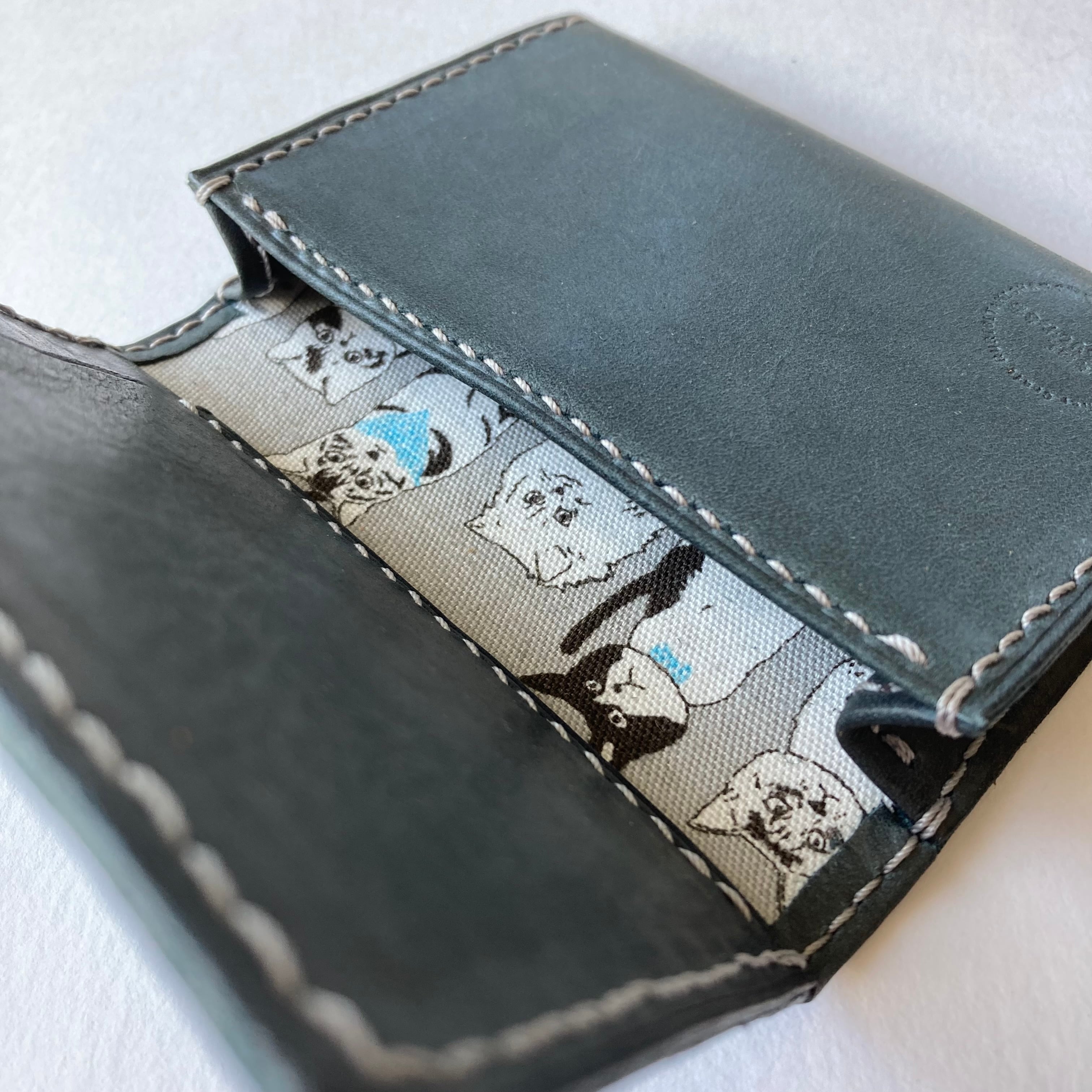 全て手縫いの、猫好きさんのための本革名刺入れです。