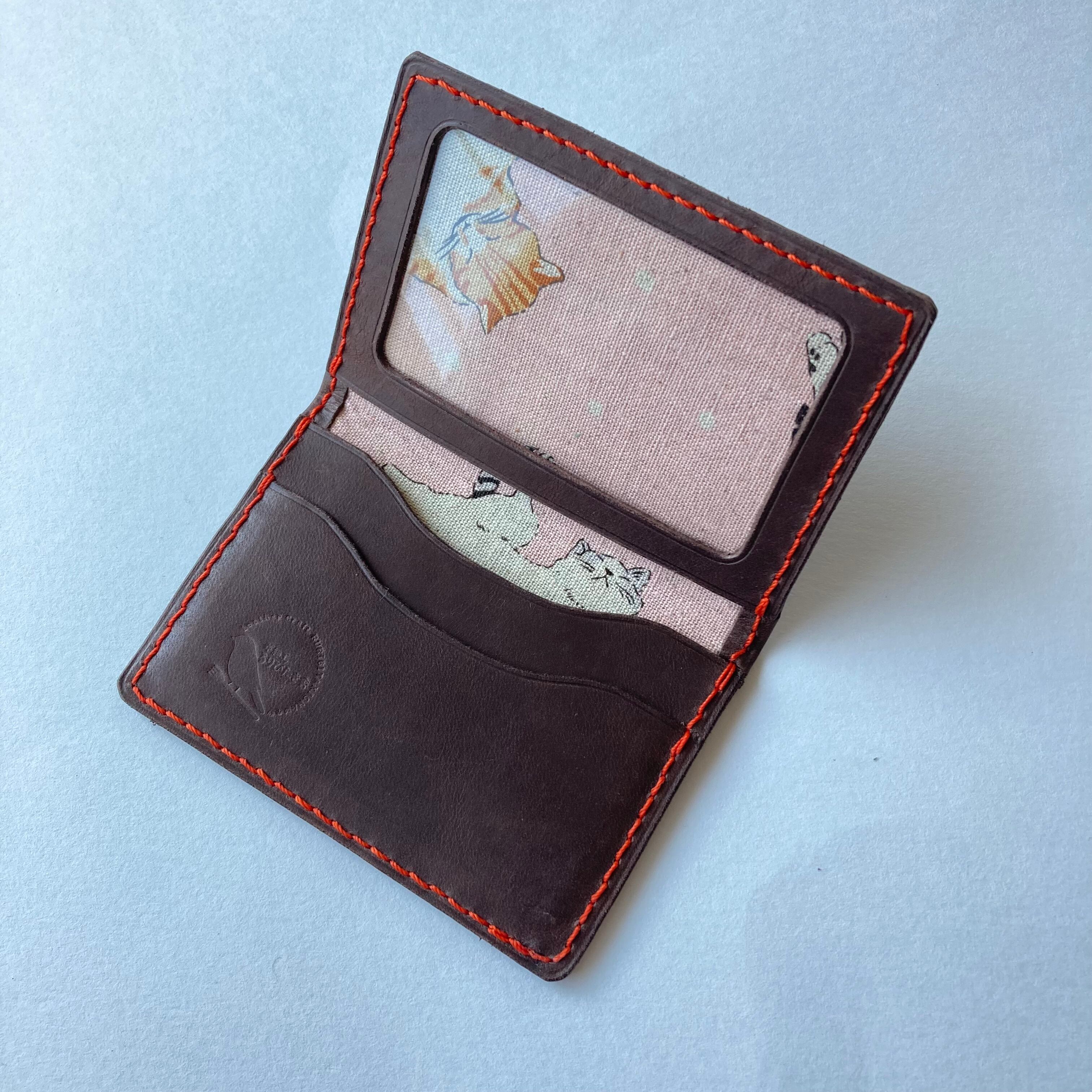 全て手縫いの、猫好きさんのための本革免許証ケースです。