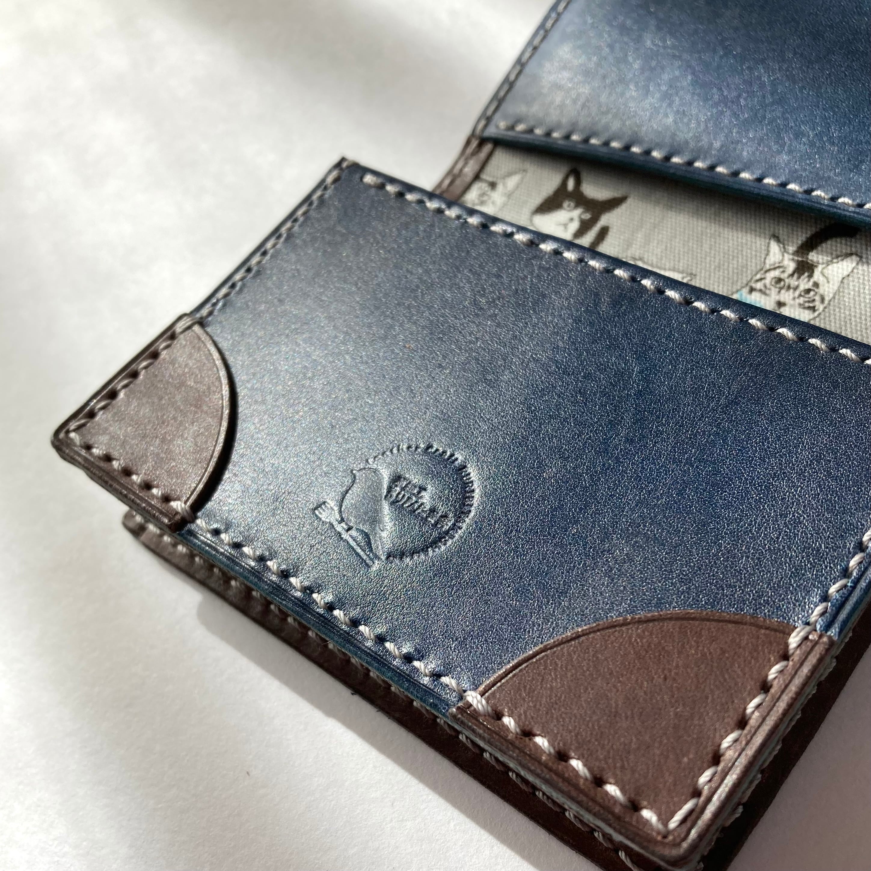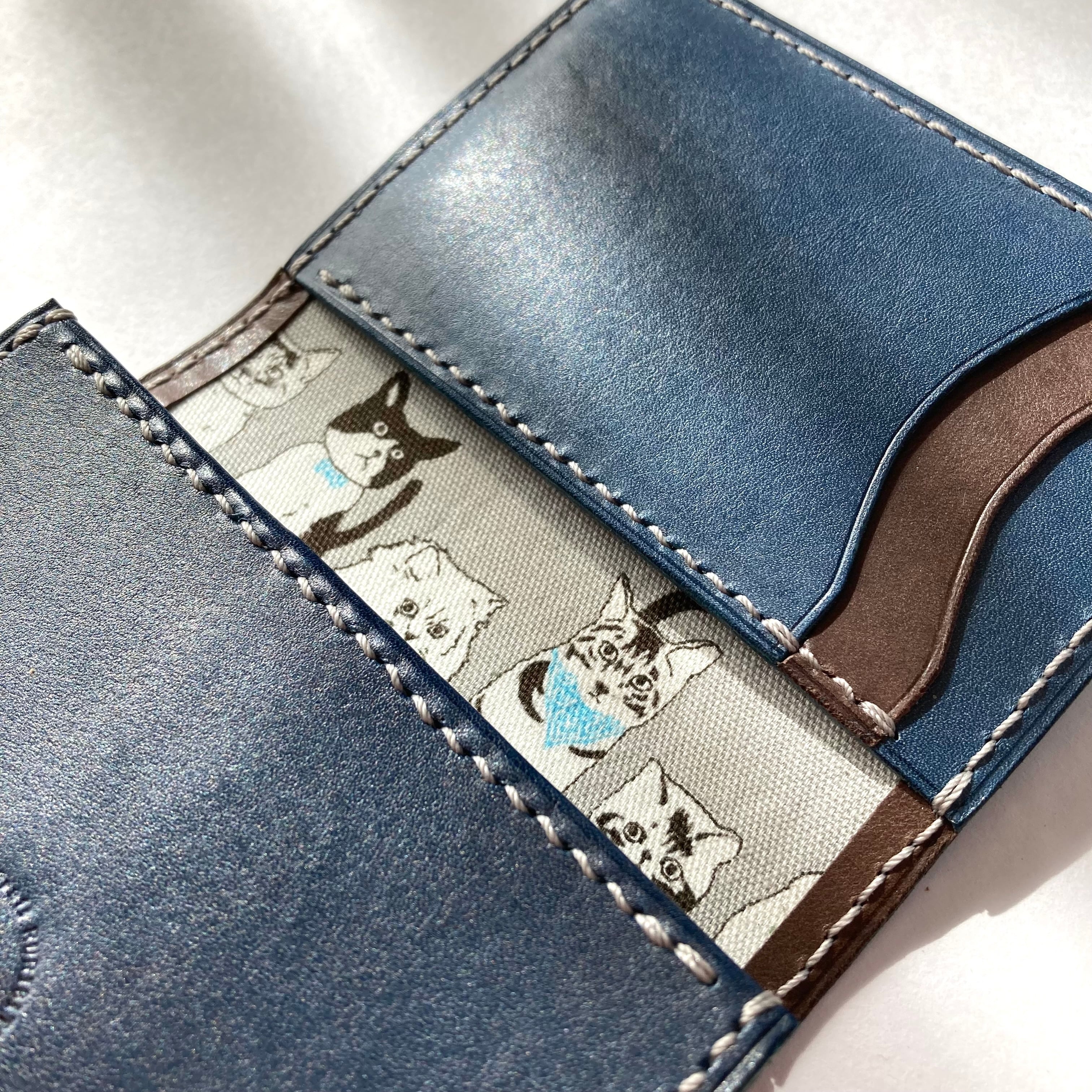 猫の名刺入れ大容量タイプ・ブルー×チョコ