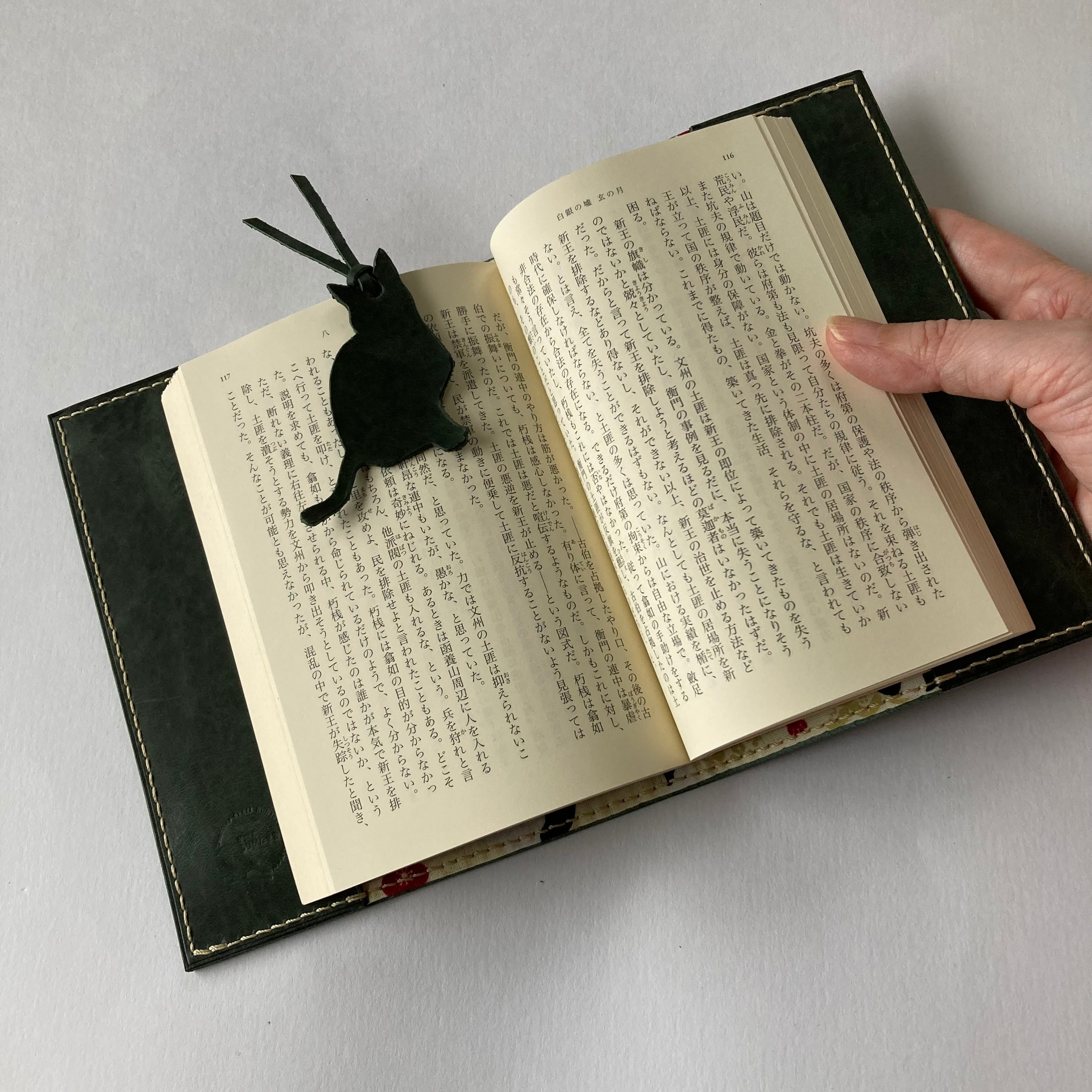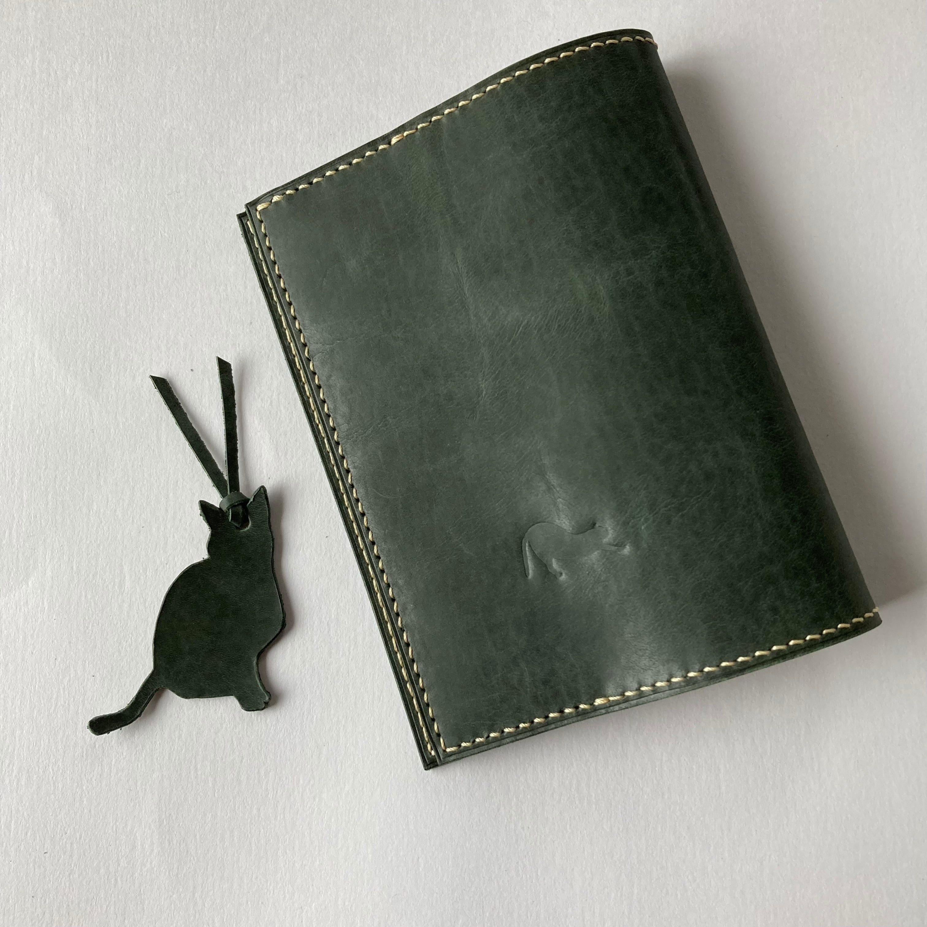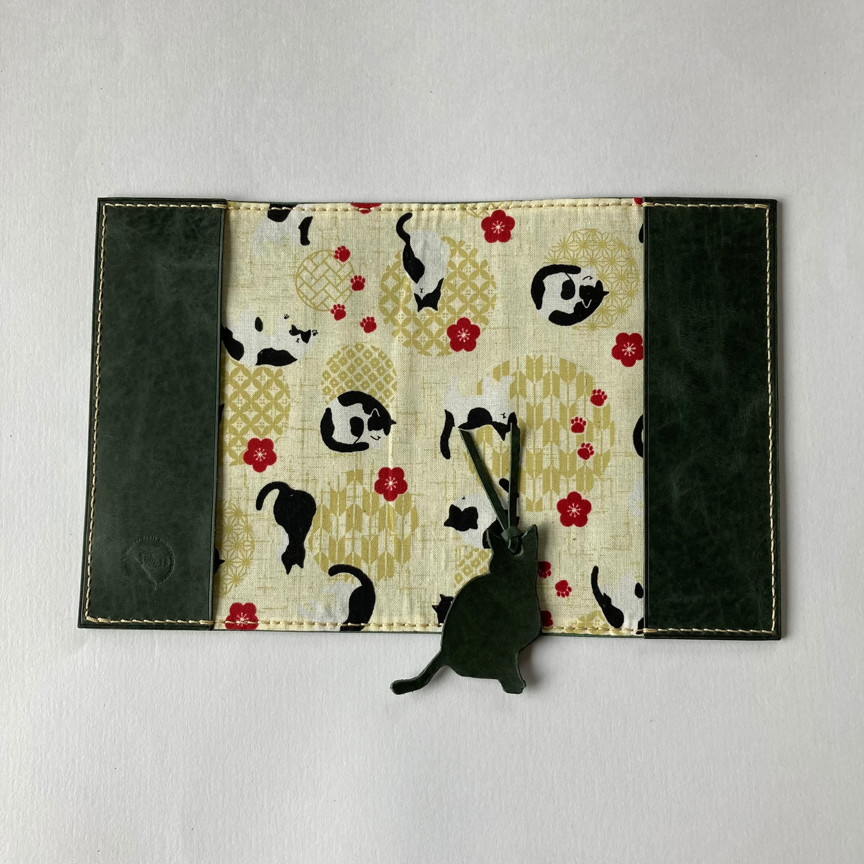 【文庫】猫のブックカバー・しおりセット(グリーン)