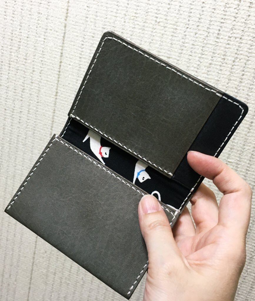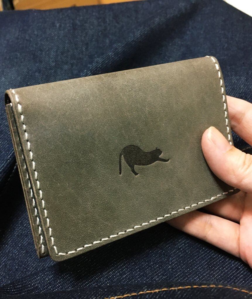 猫の名刺入れ・モノトーン【革・ヌメ革・カードケース・猫】