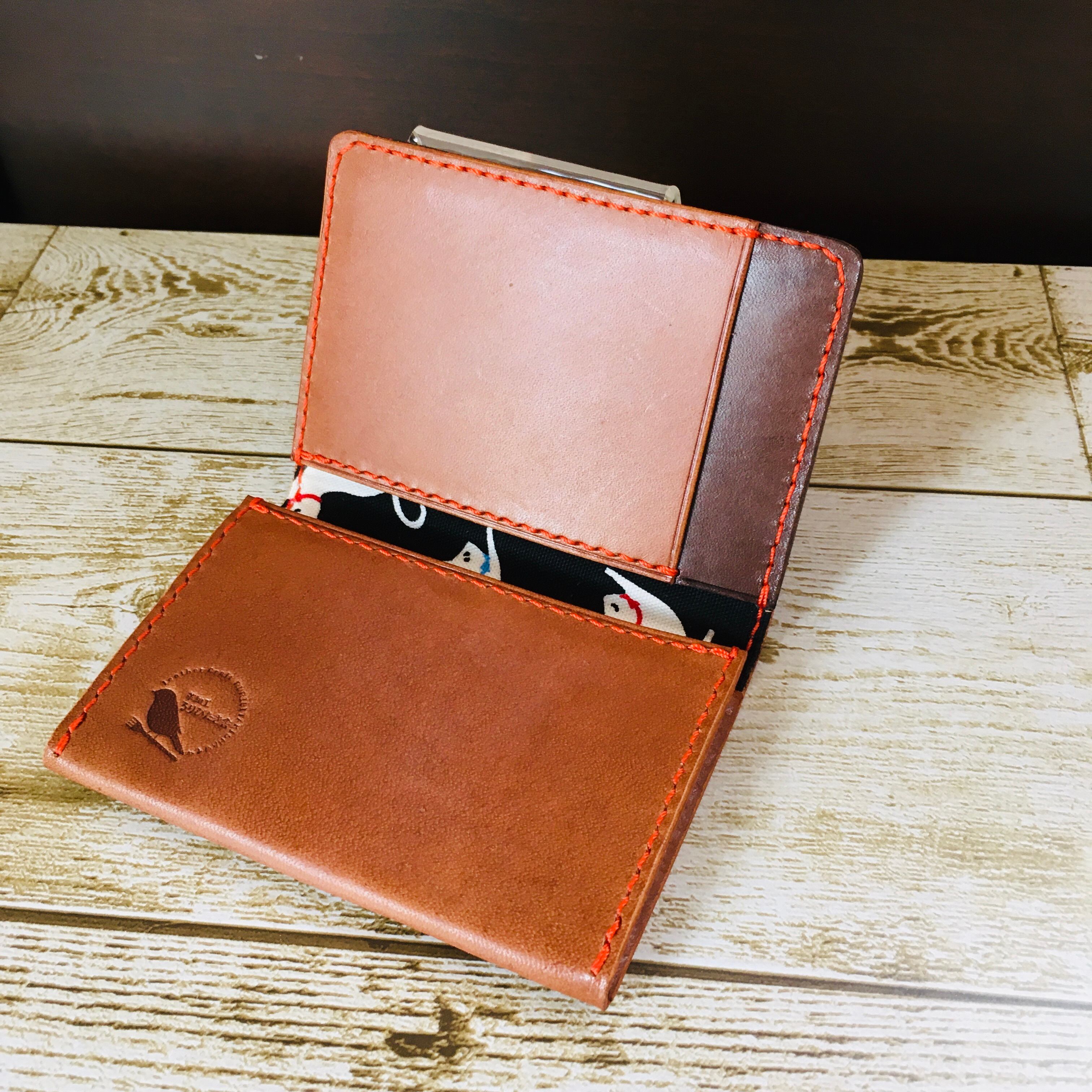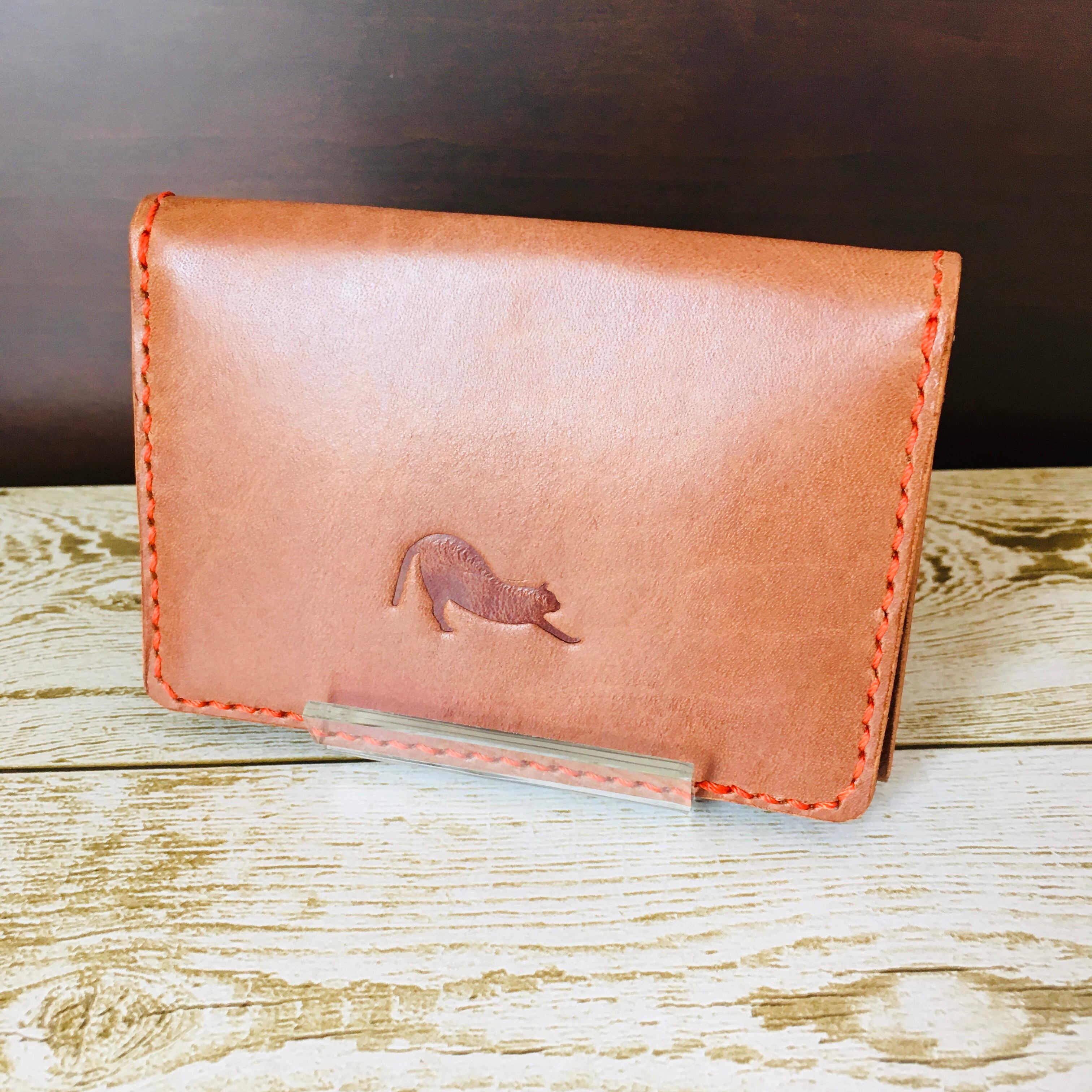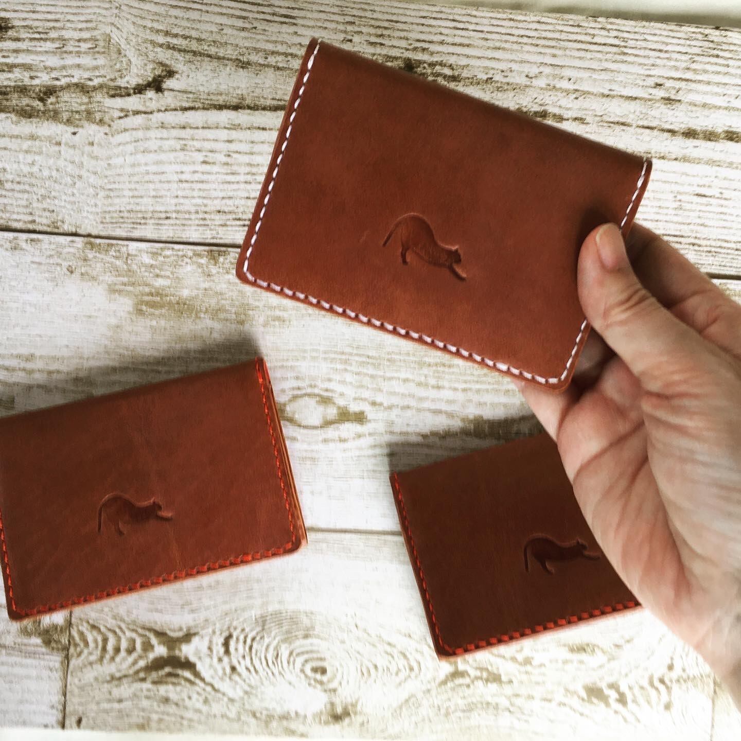 全て手縫いの、猫好きさんのための本革名刺入れです。