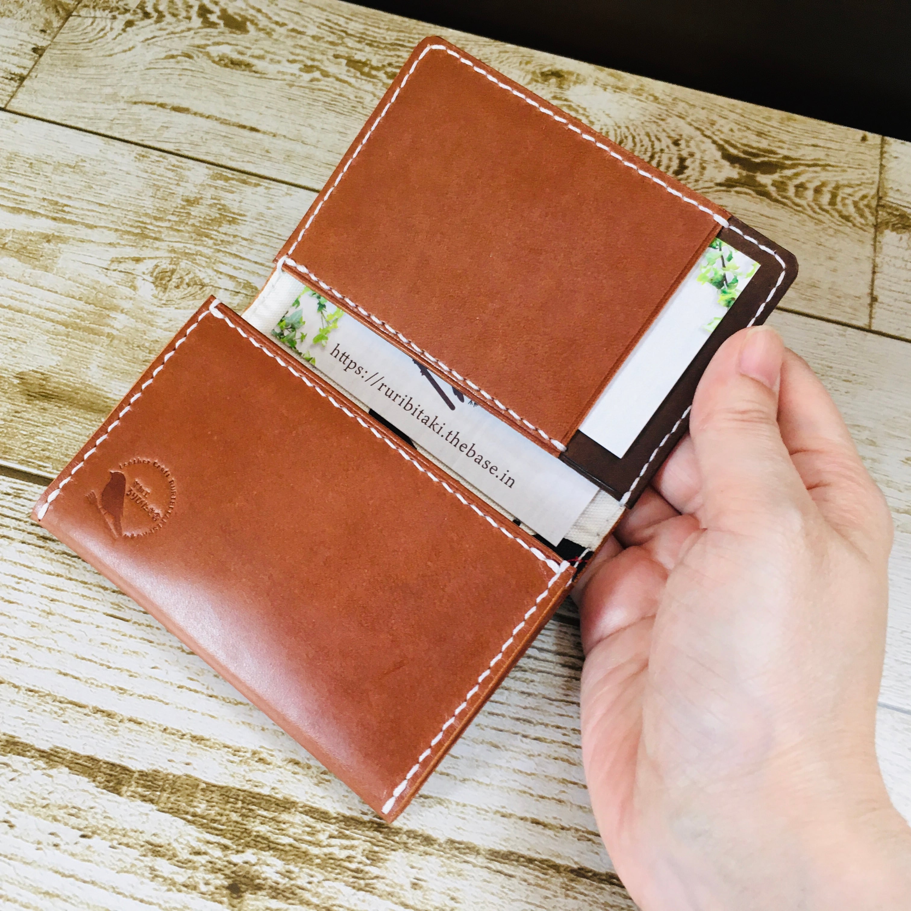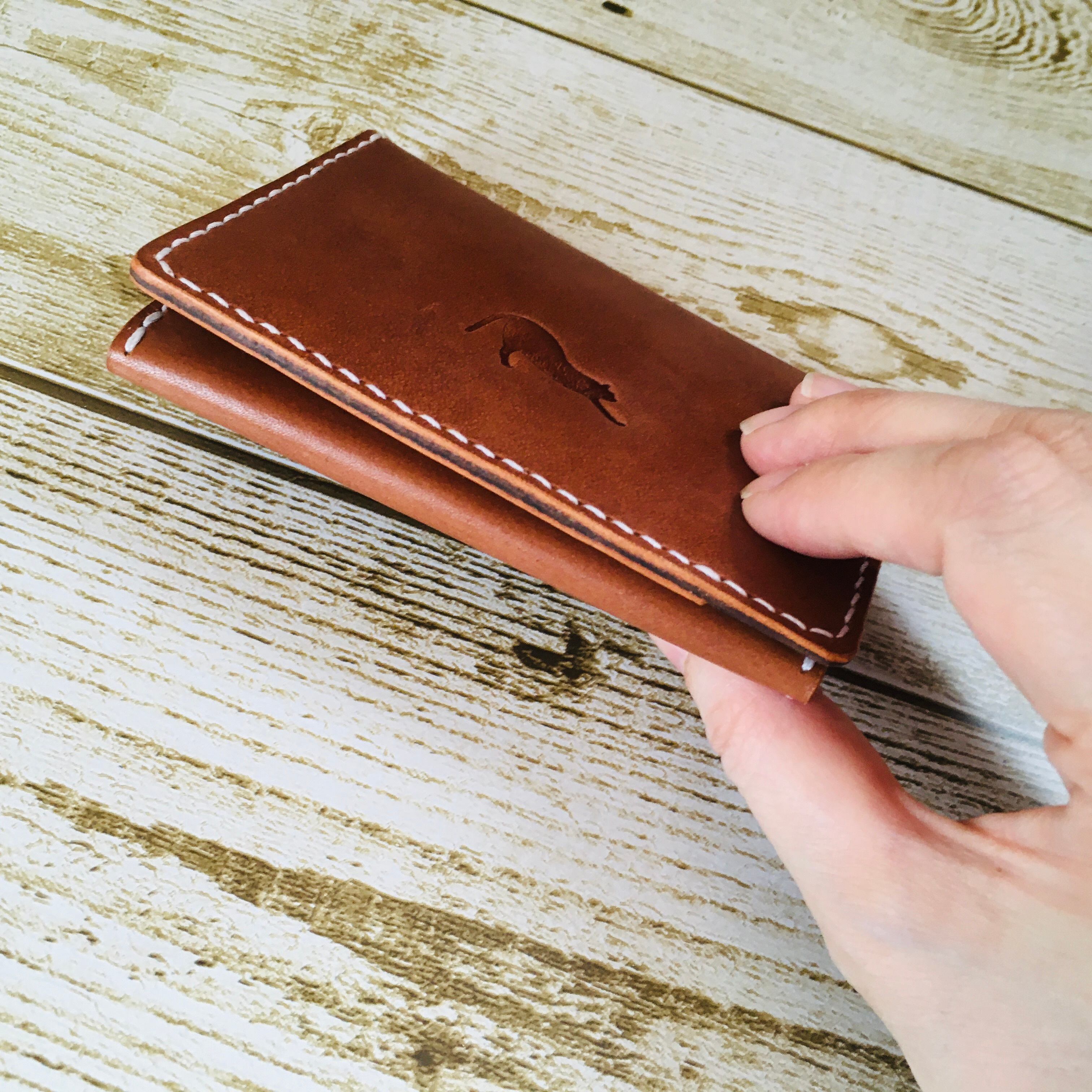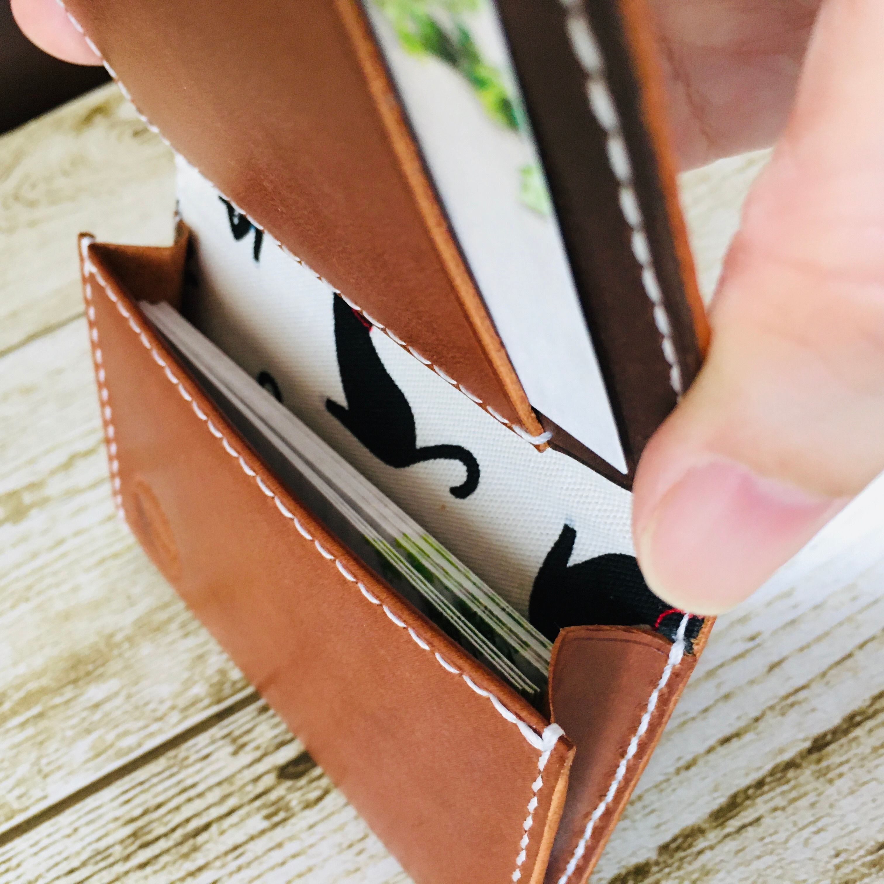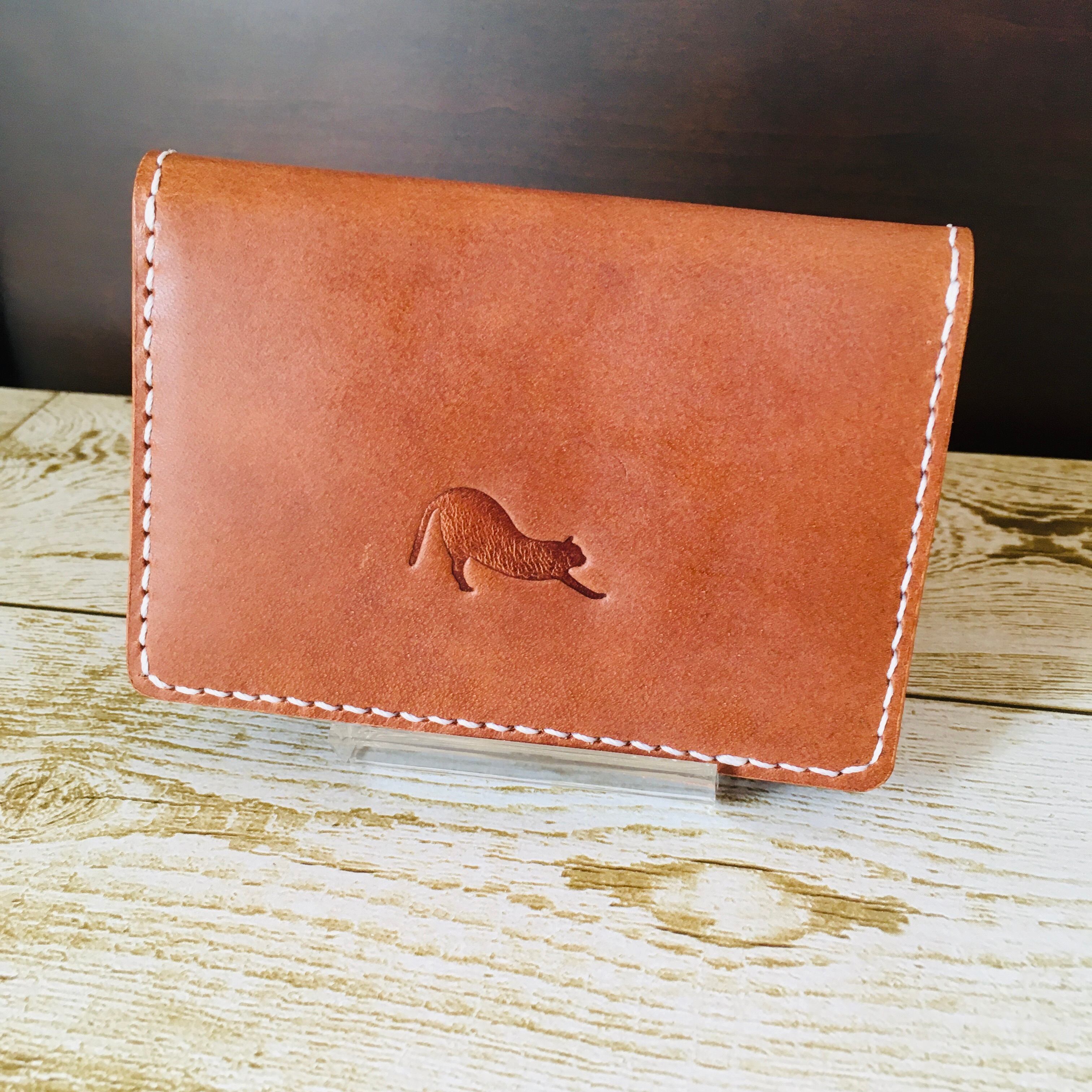 全て手縫いの、猫好きさんのための本革名刺入れです。