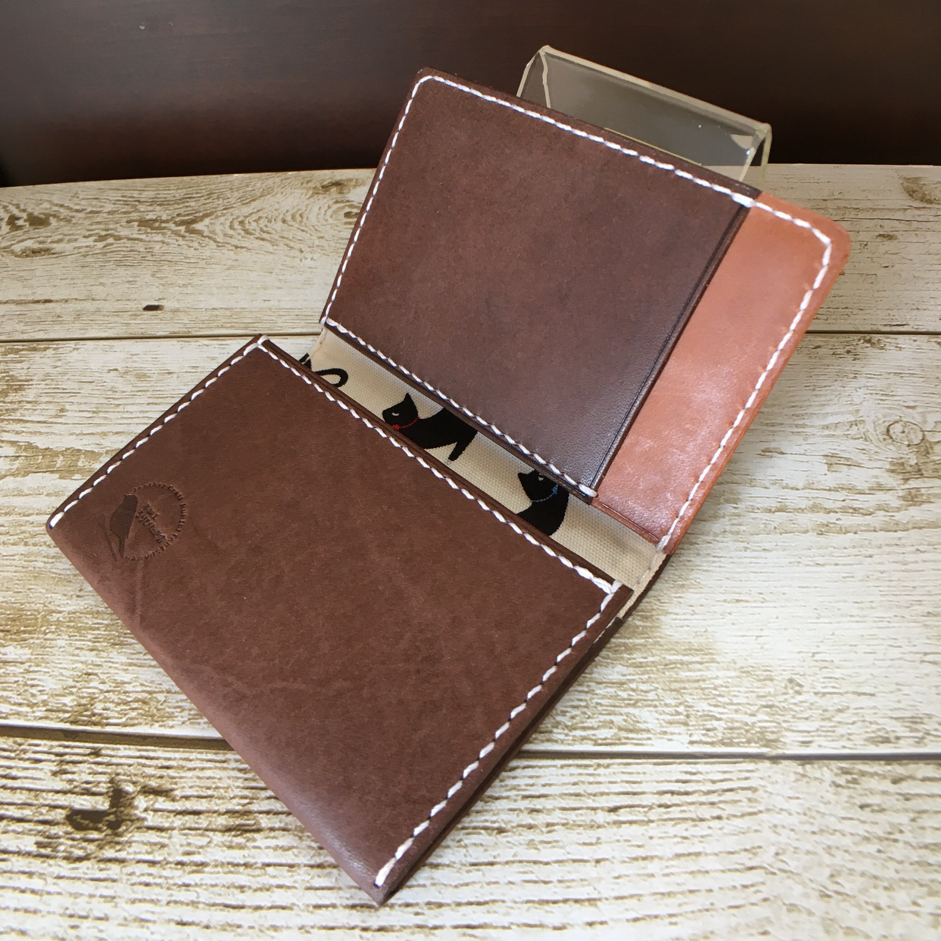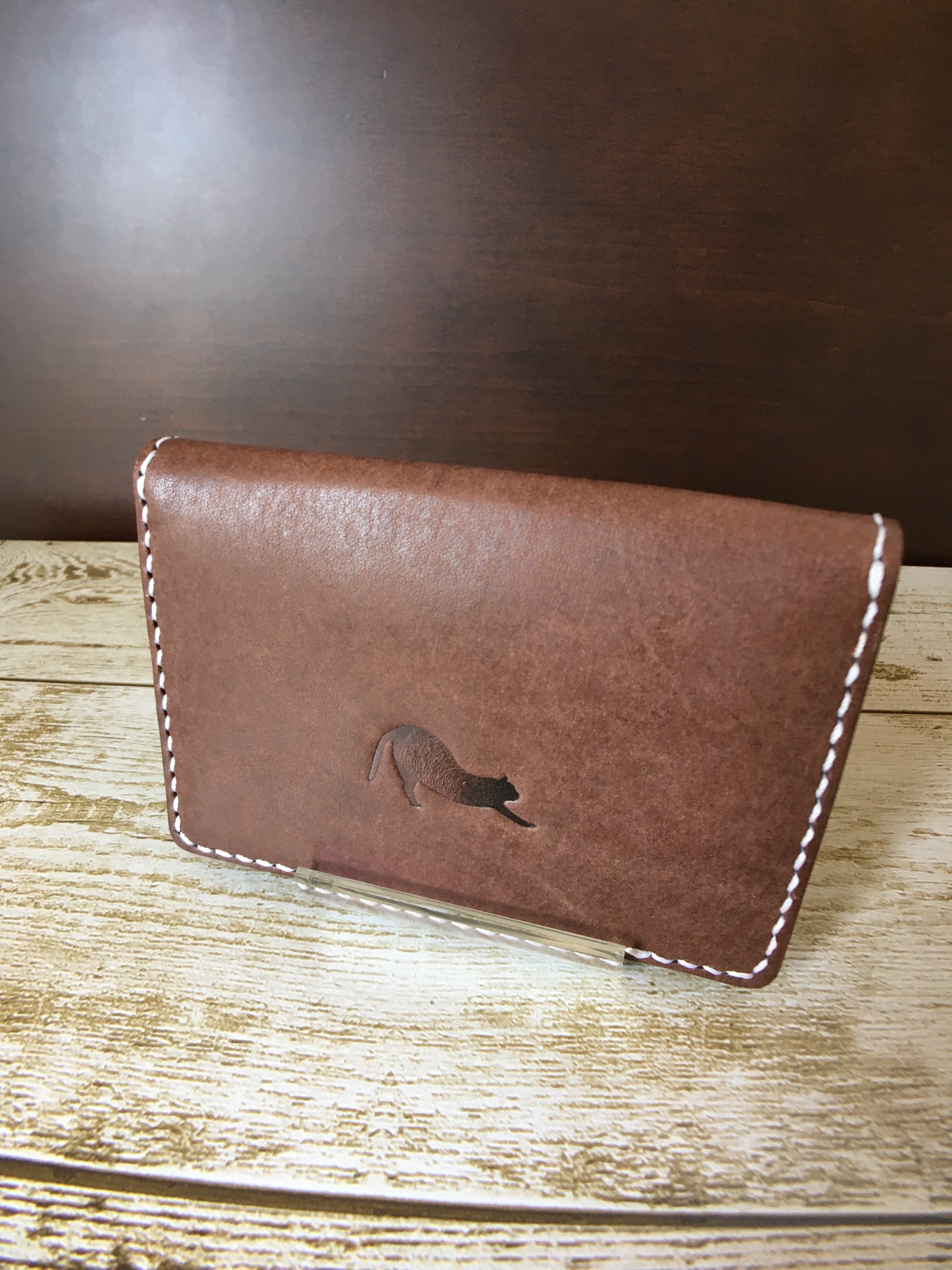 全て手縫いの、猫好きさんのための本革名刺入れです。
