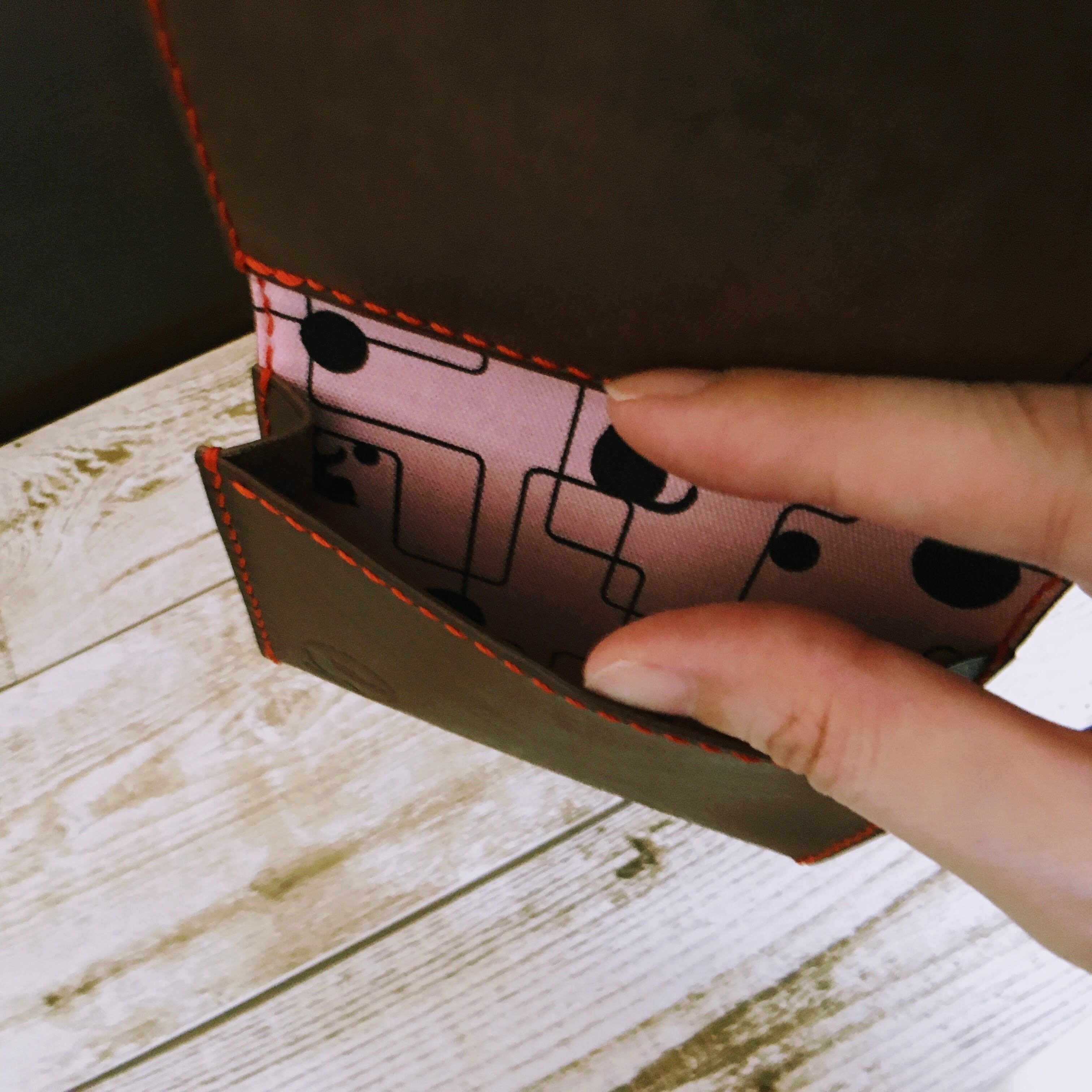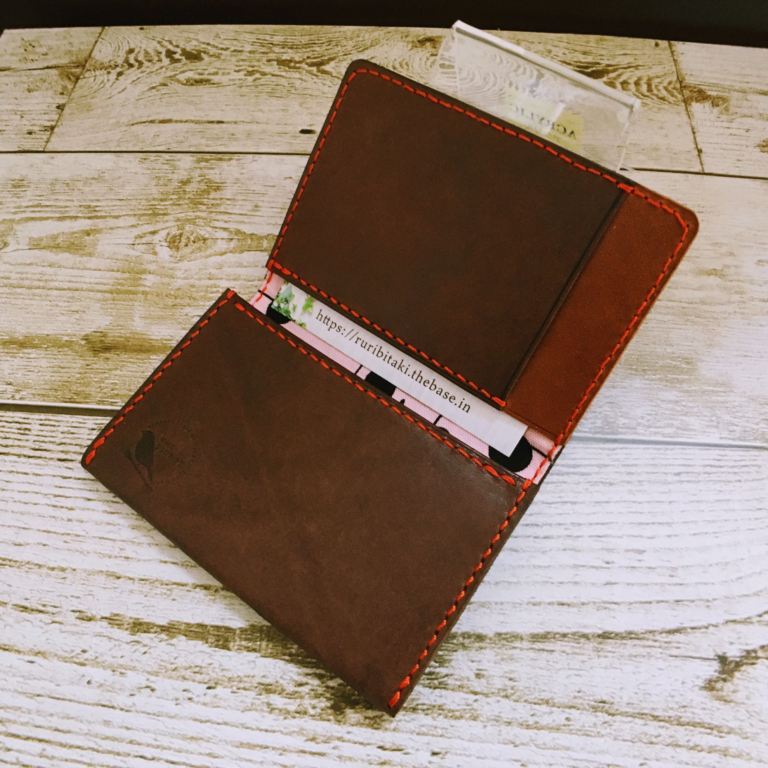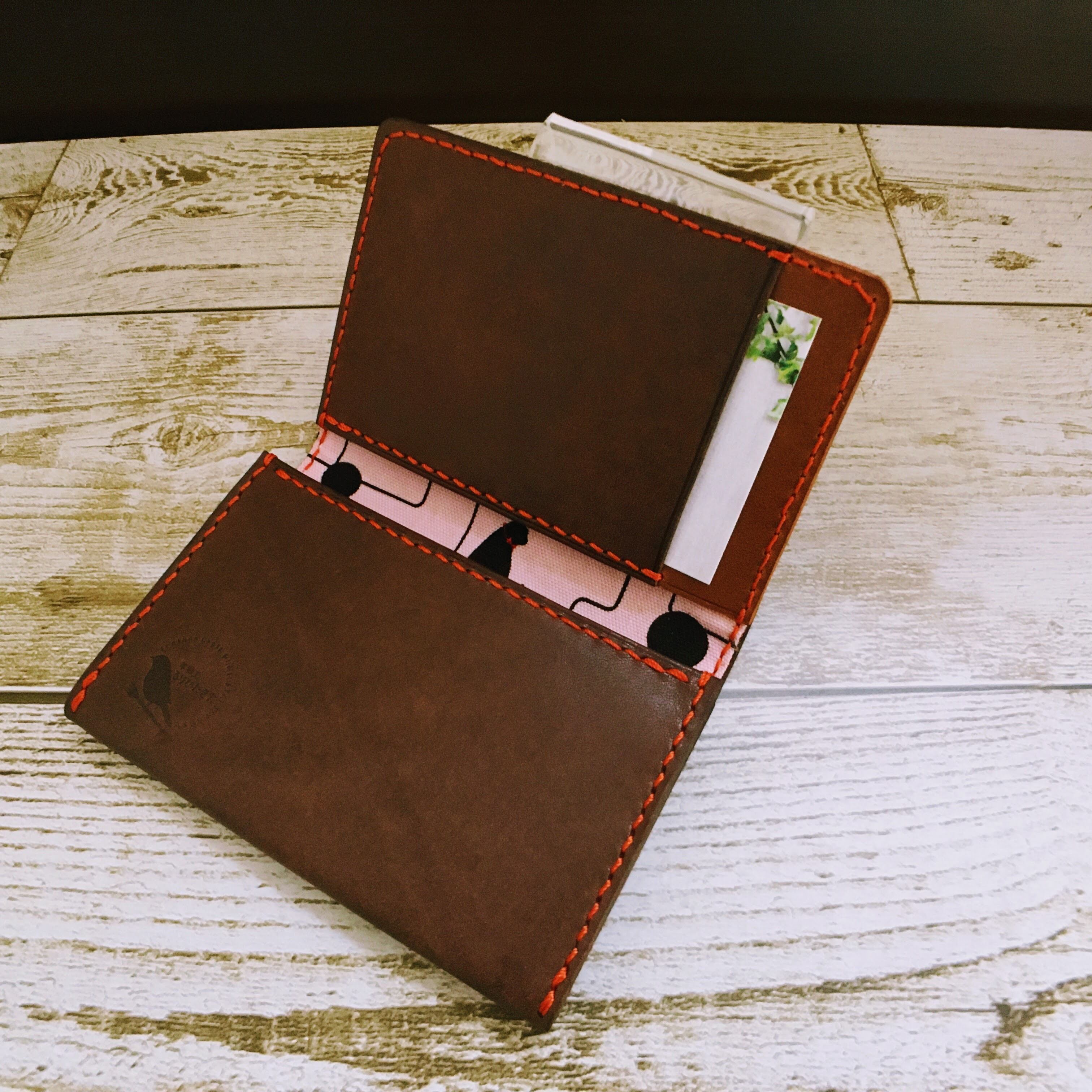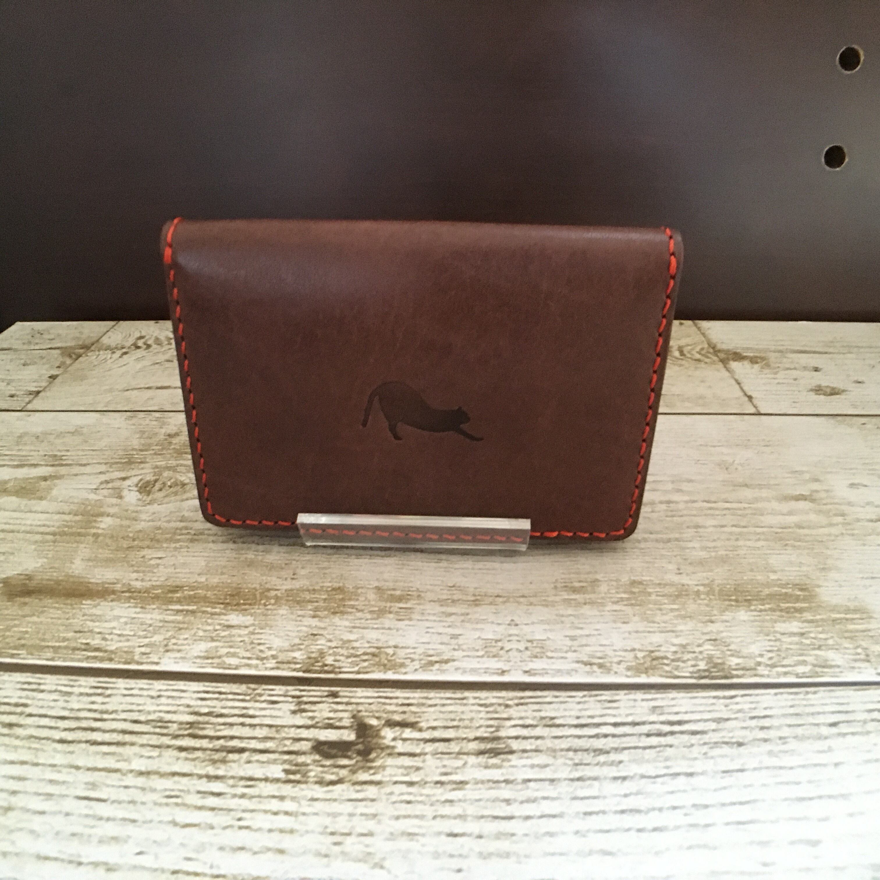 全て手縫いの、猫好きさんのための本革名刺入れです。