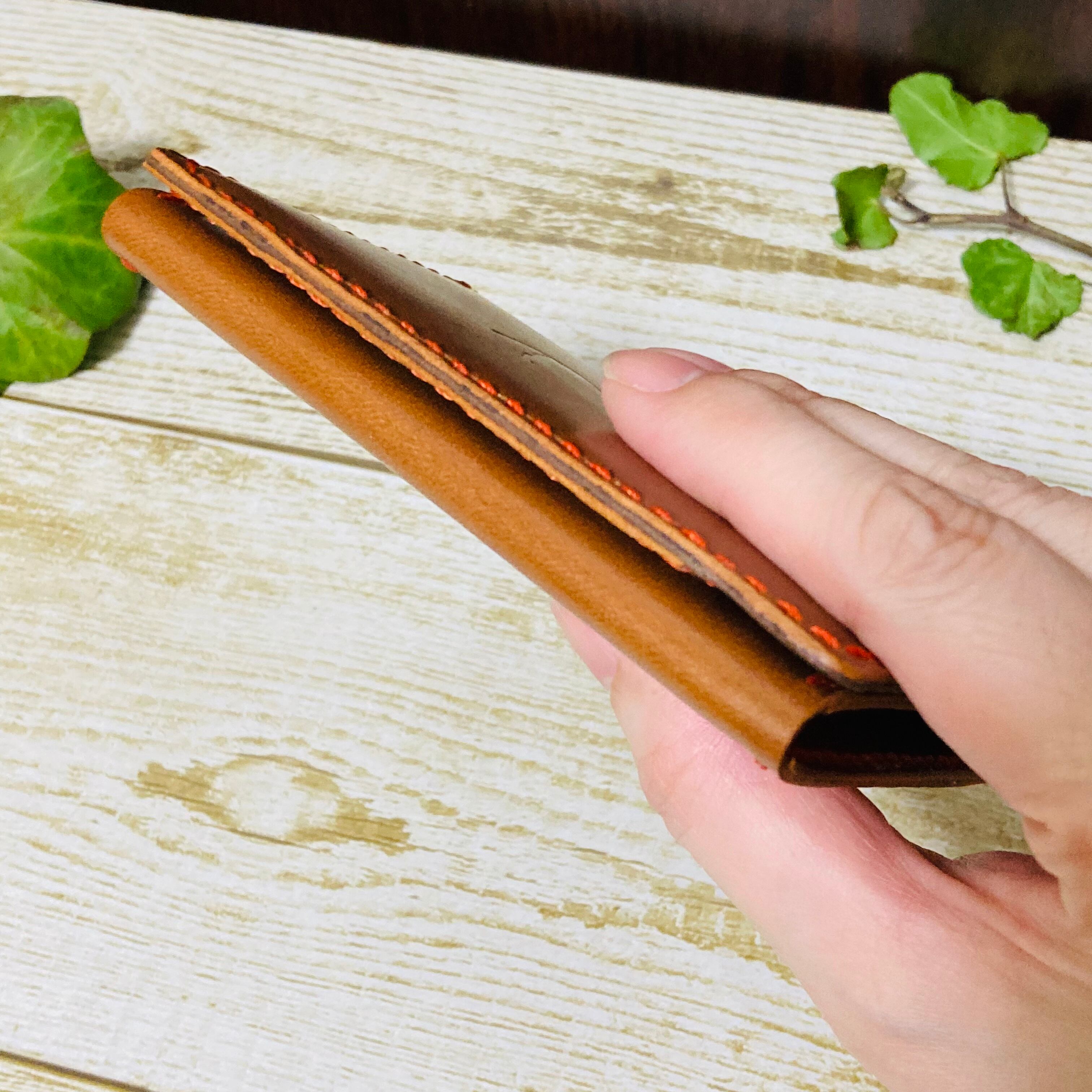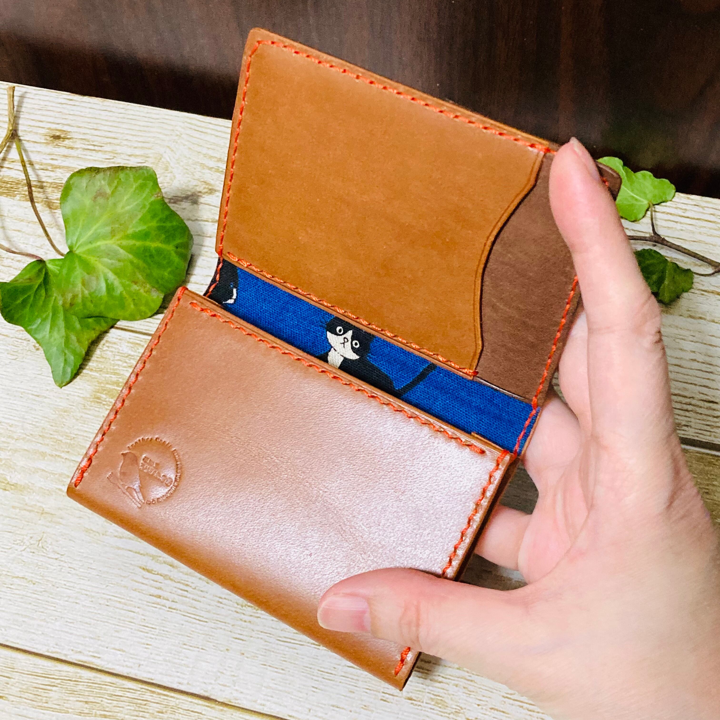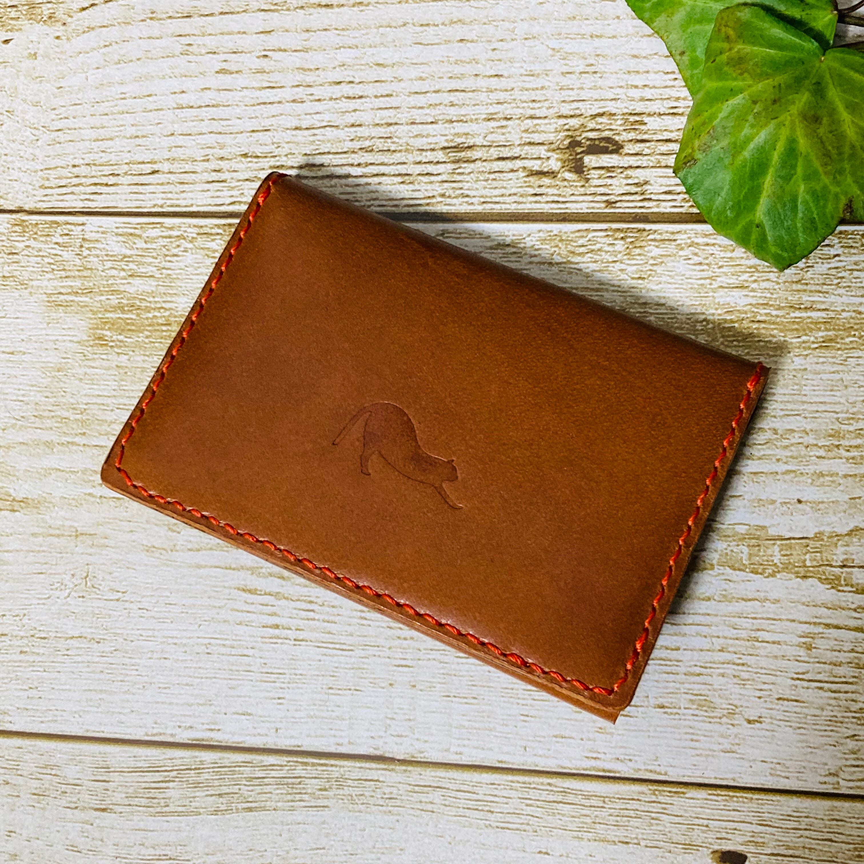 全て手縫いの、猫好きさんのための本革名刺入れです。