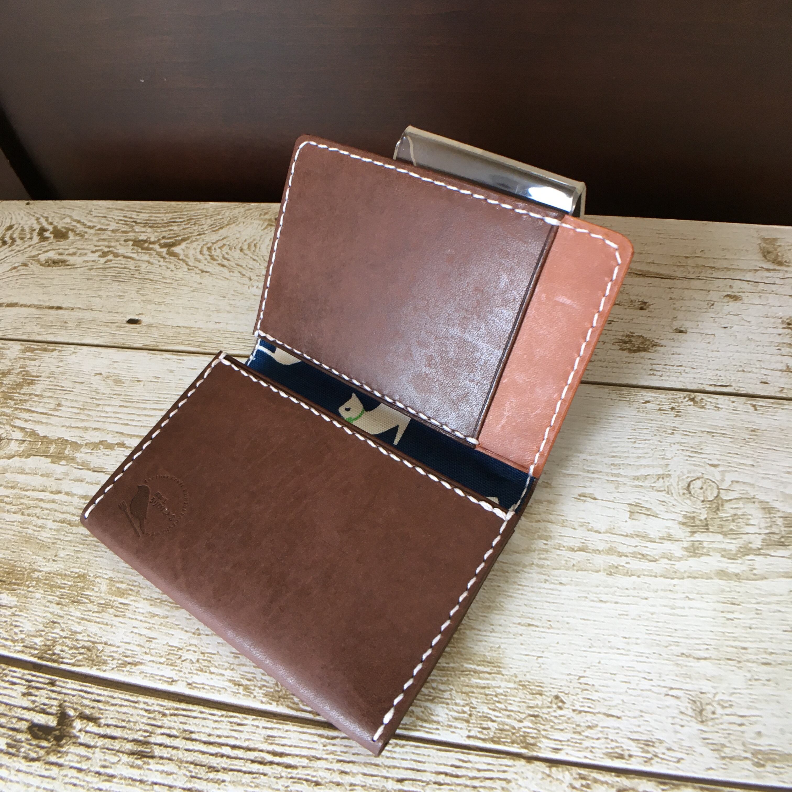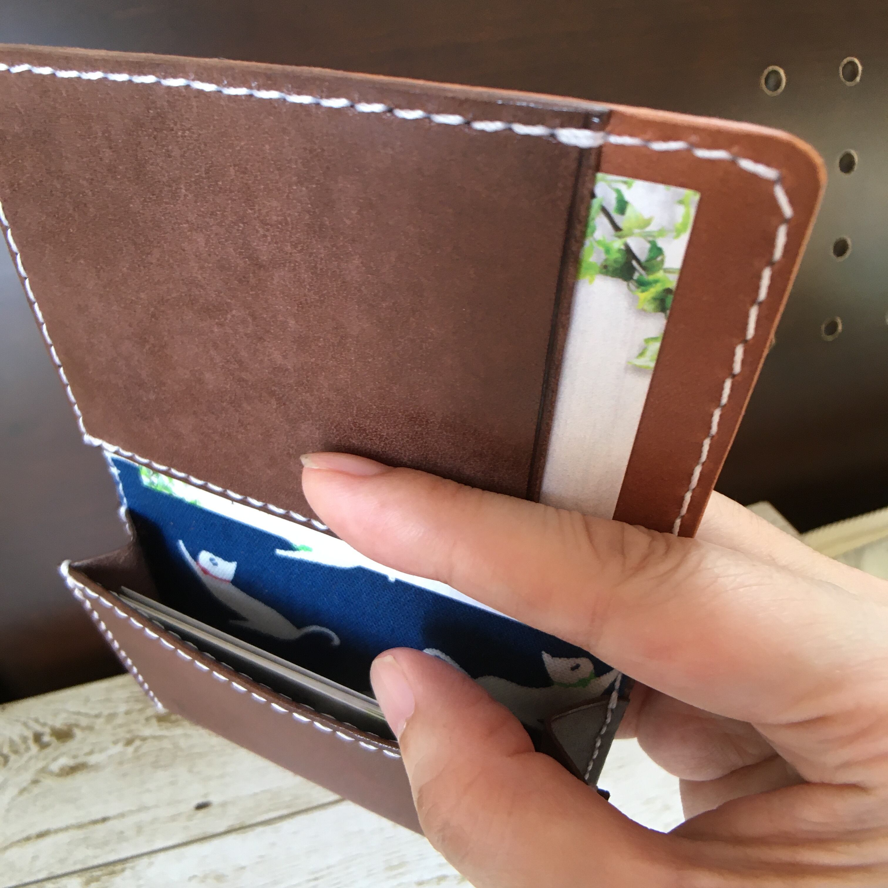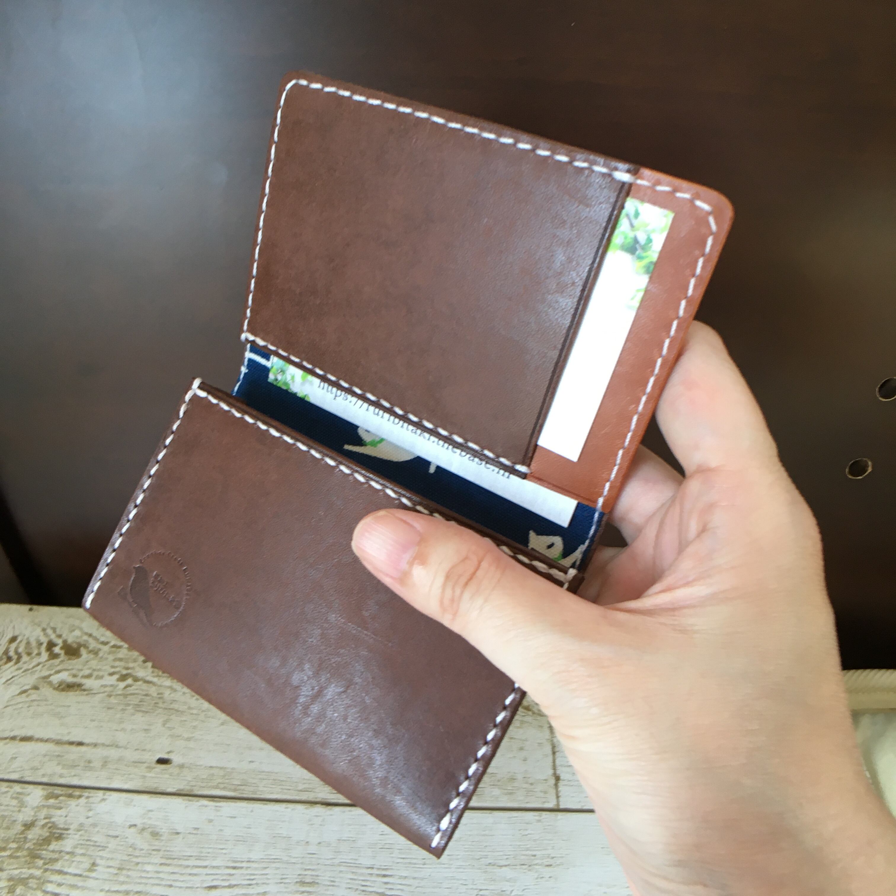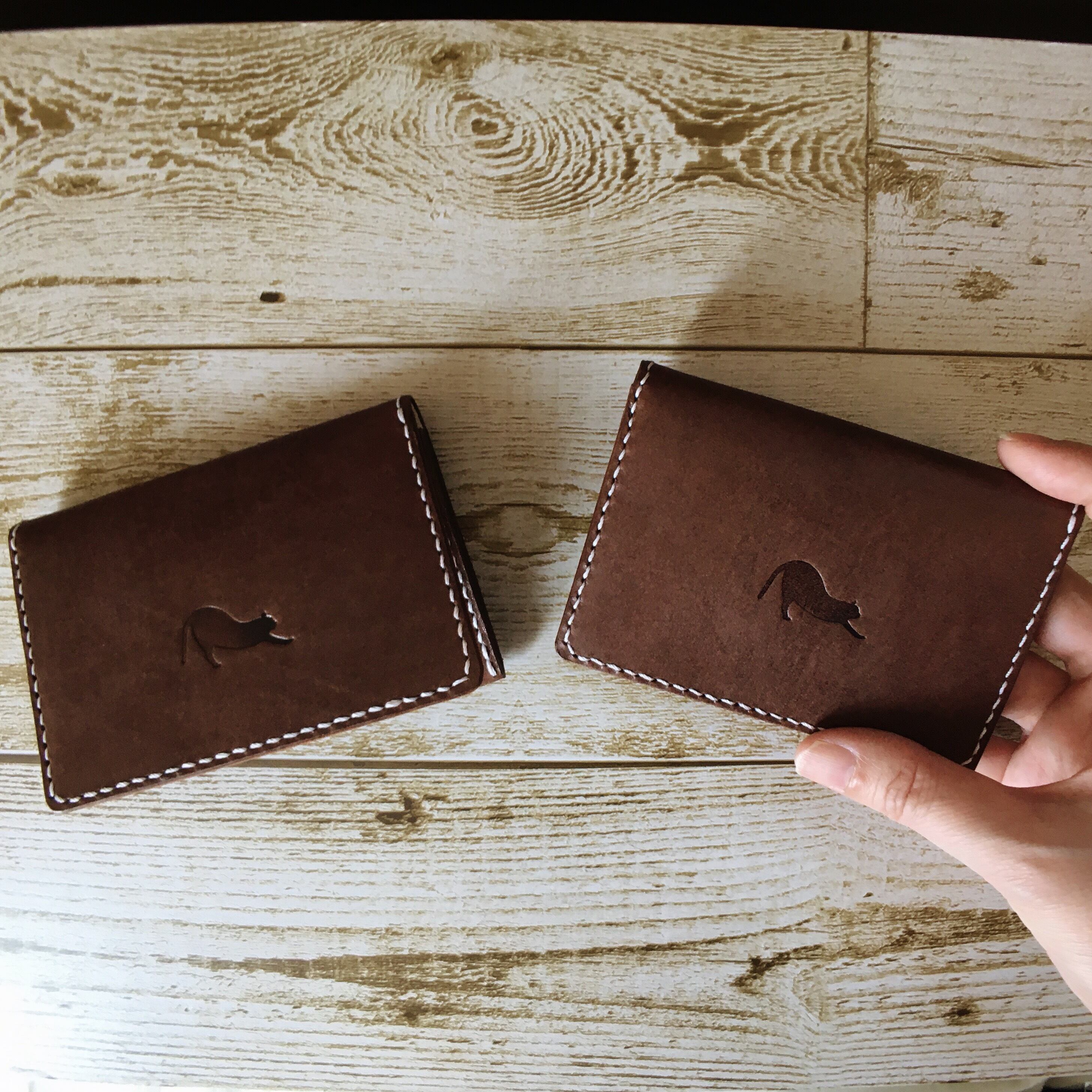全て手縫いの、猫好きさんのための本革名刺入れです。