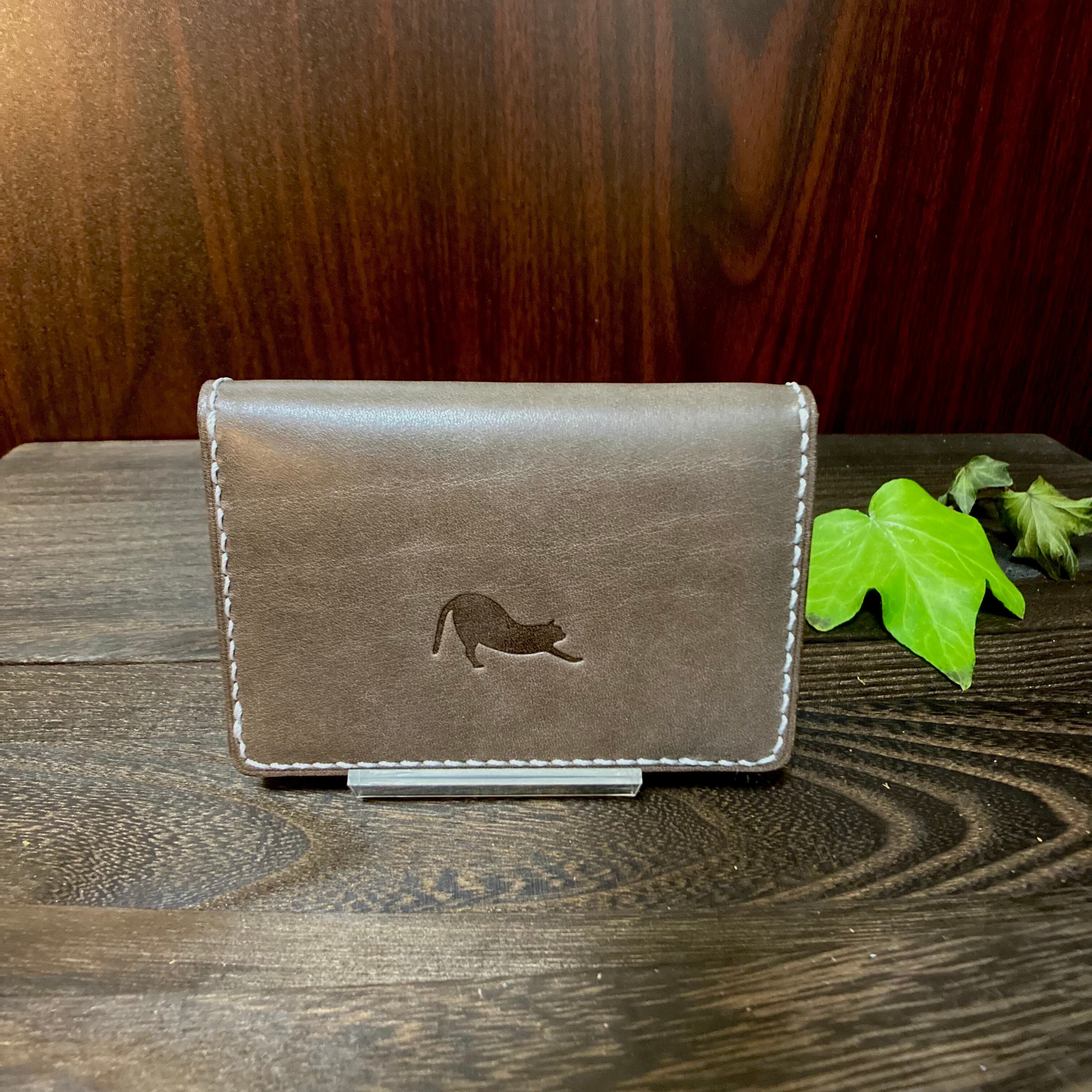 全て手縫いの、猫好きさんのための本革名刺入れです。