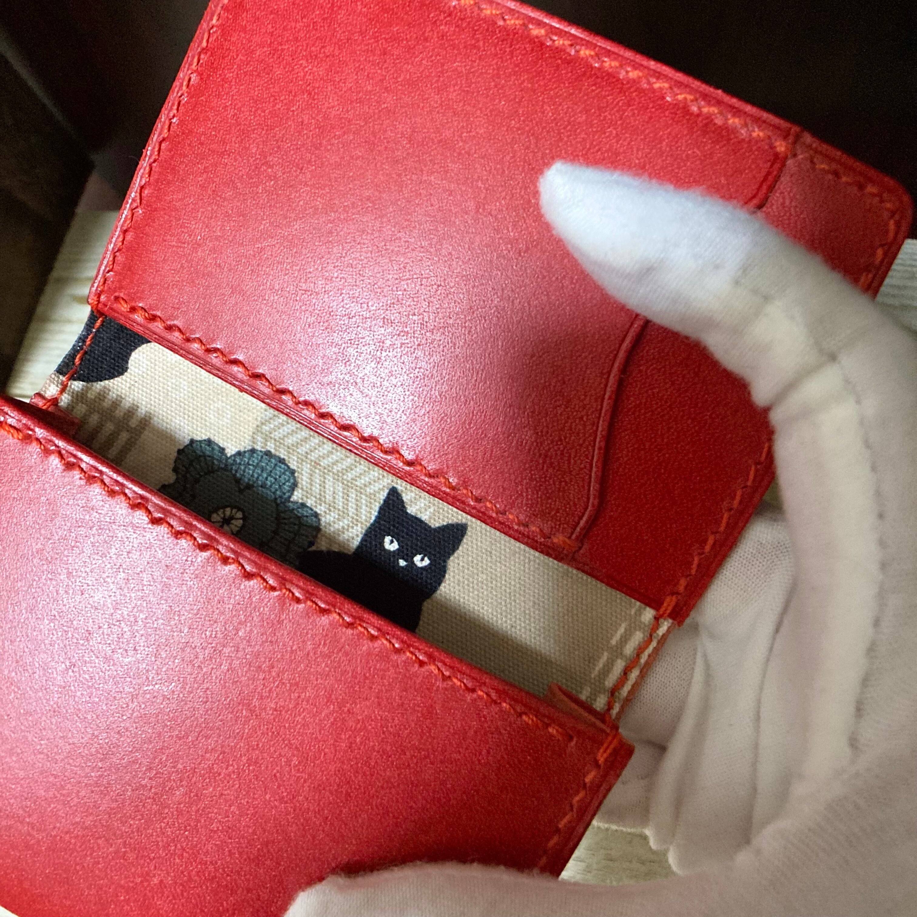【ご予約M様専用】黒猫の名刺入れ/レッド【革・ヌメ革・カードケース・猫】