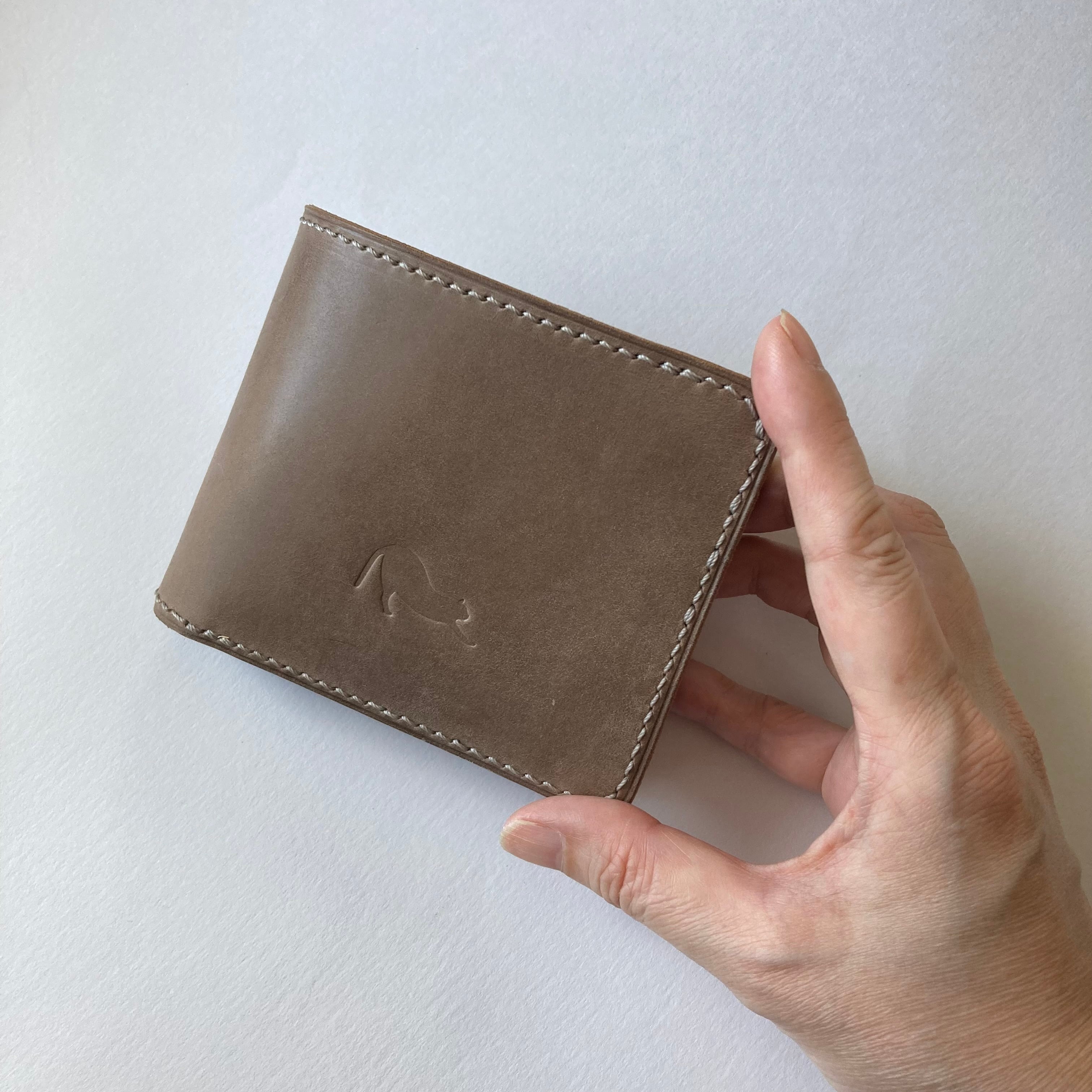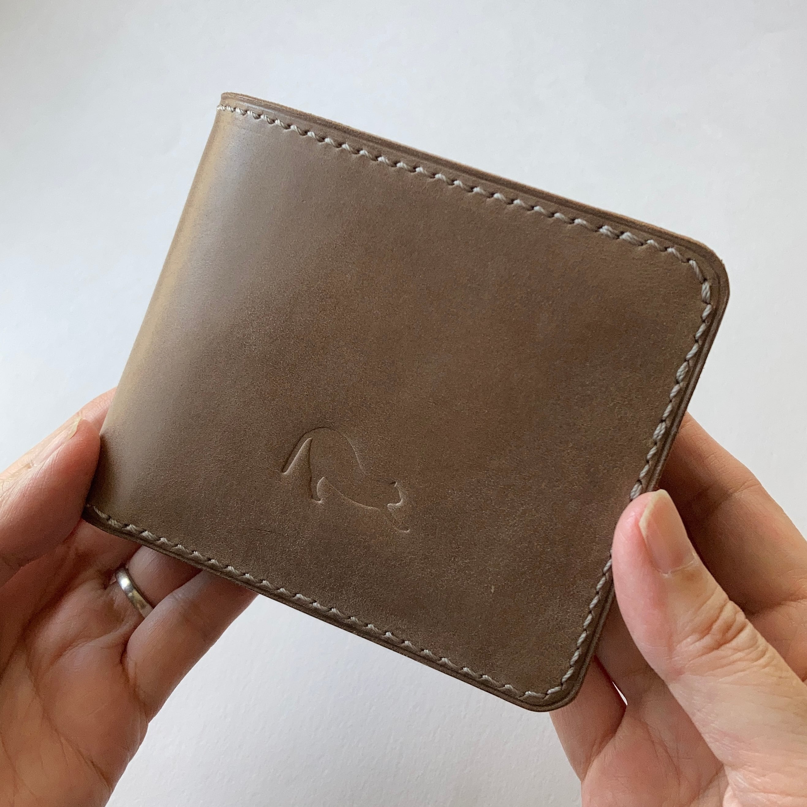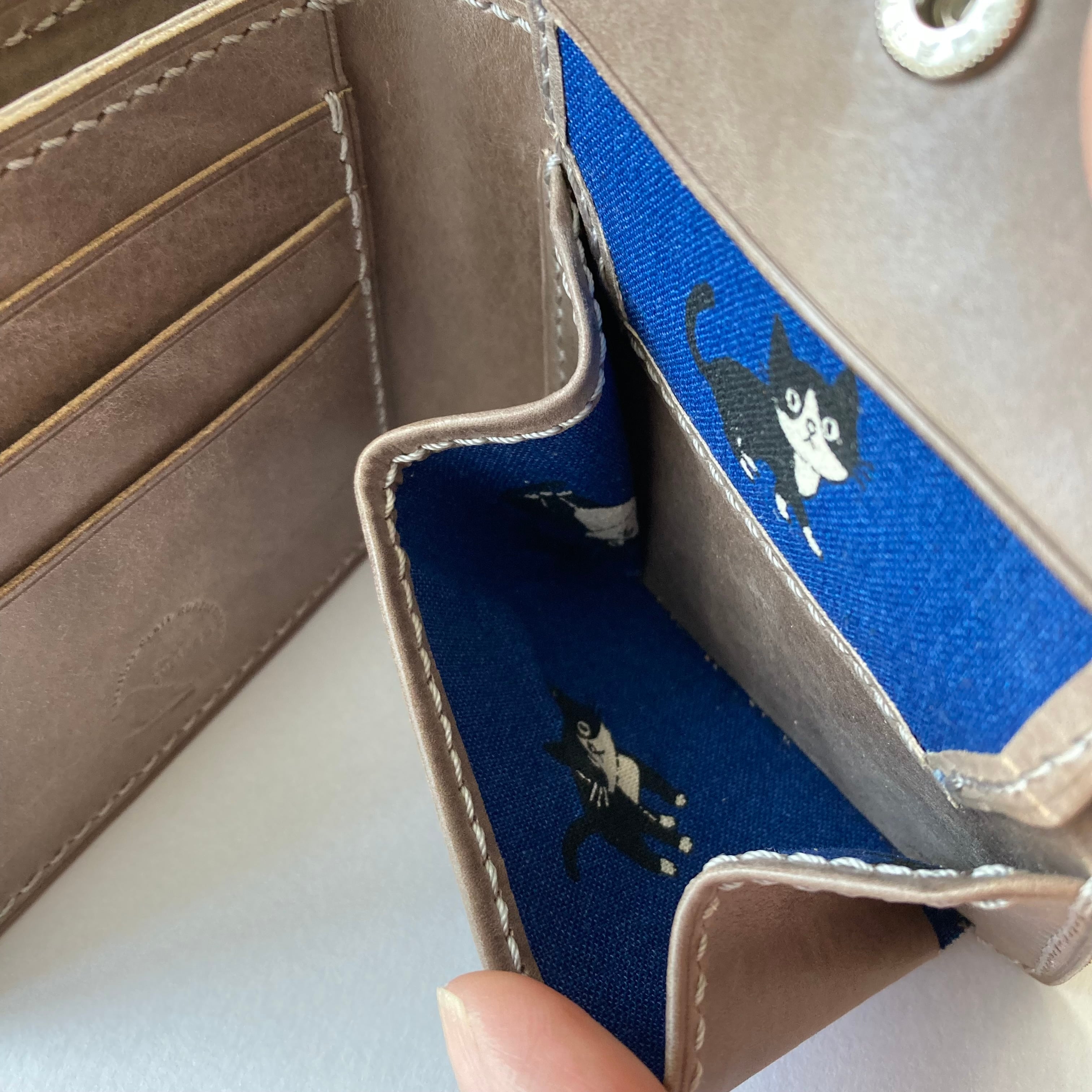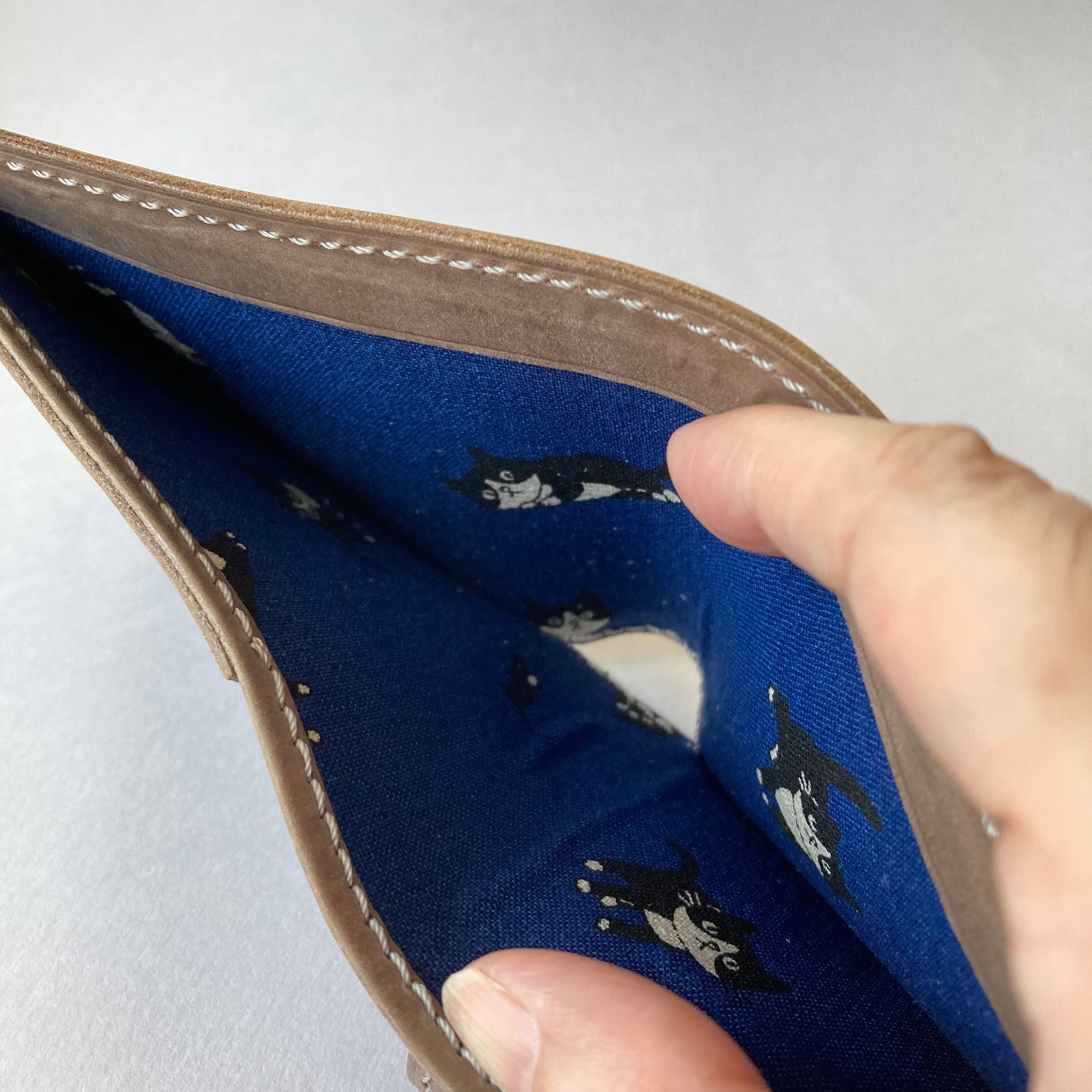 全て手縫いの、猫好きさんのための本革二つ折財布です。