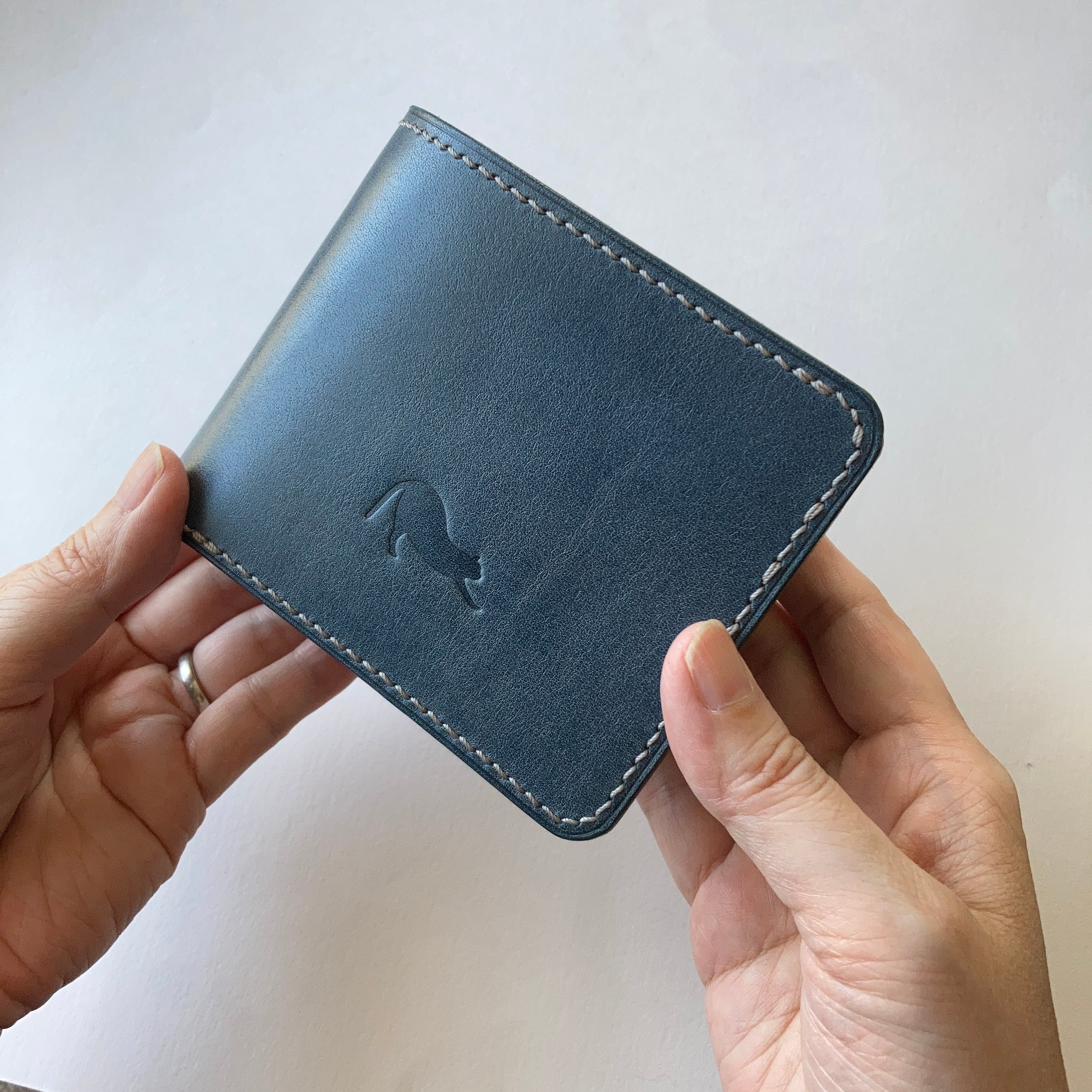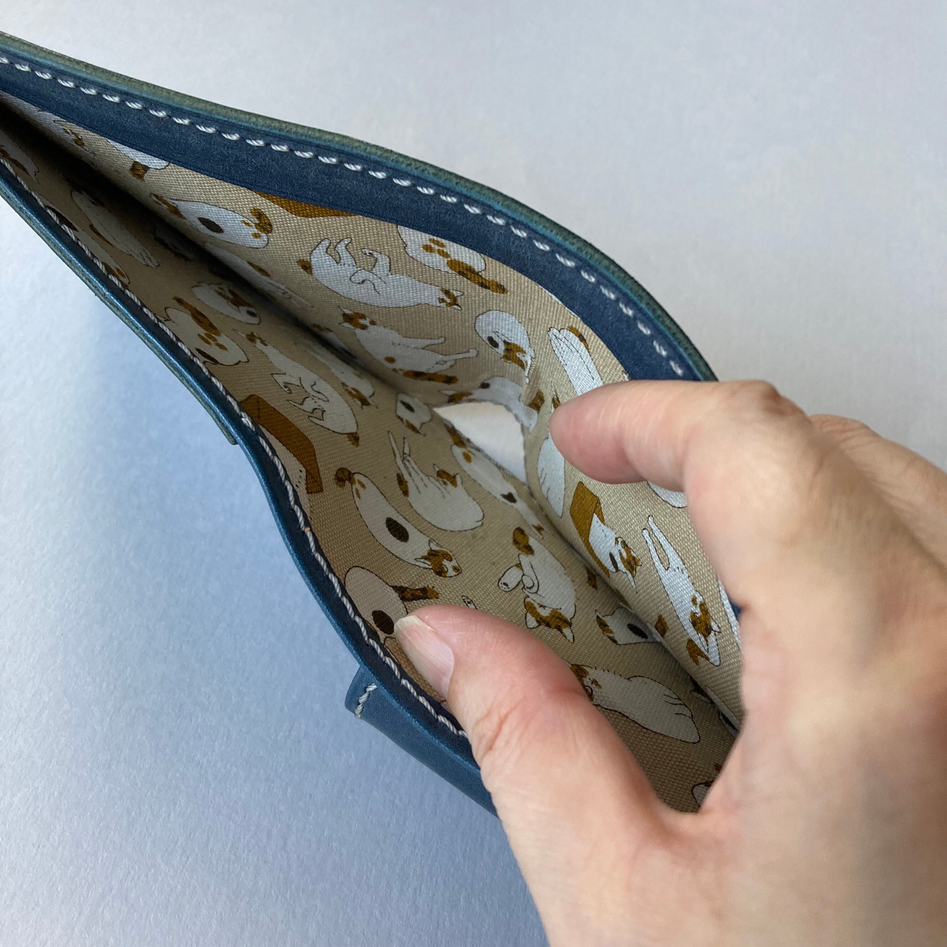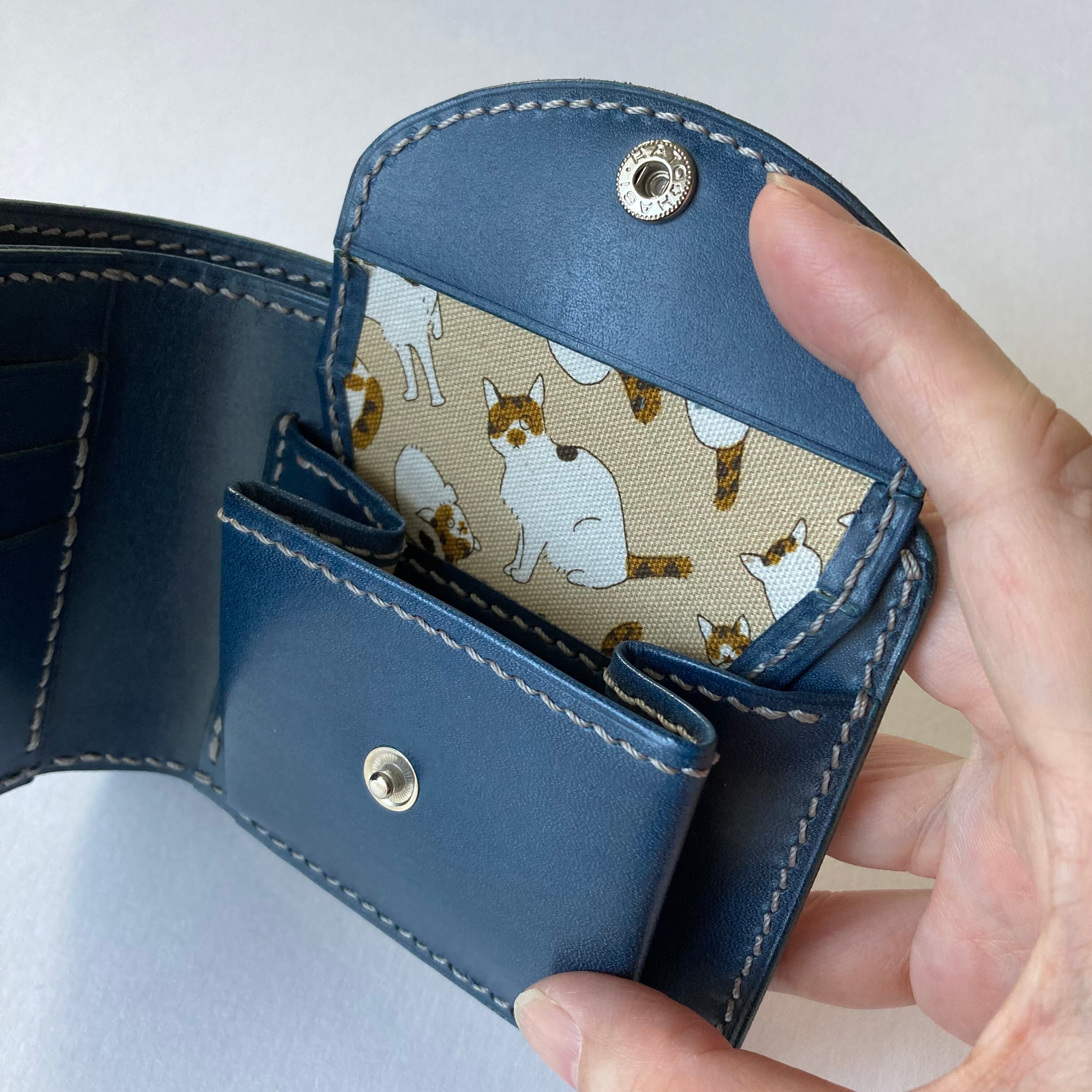 全て手縫いの、猫好きさんのための本革二つ折財布です。